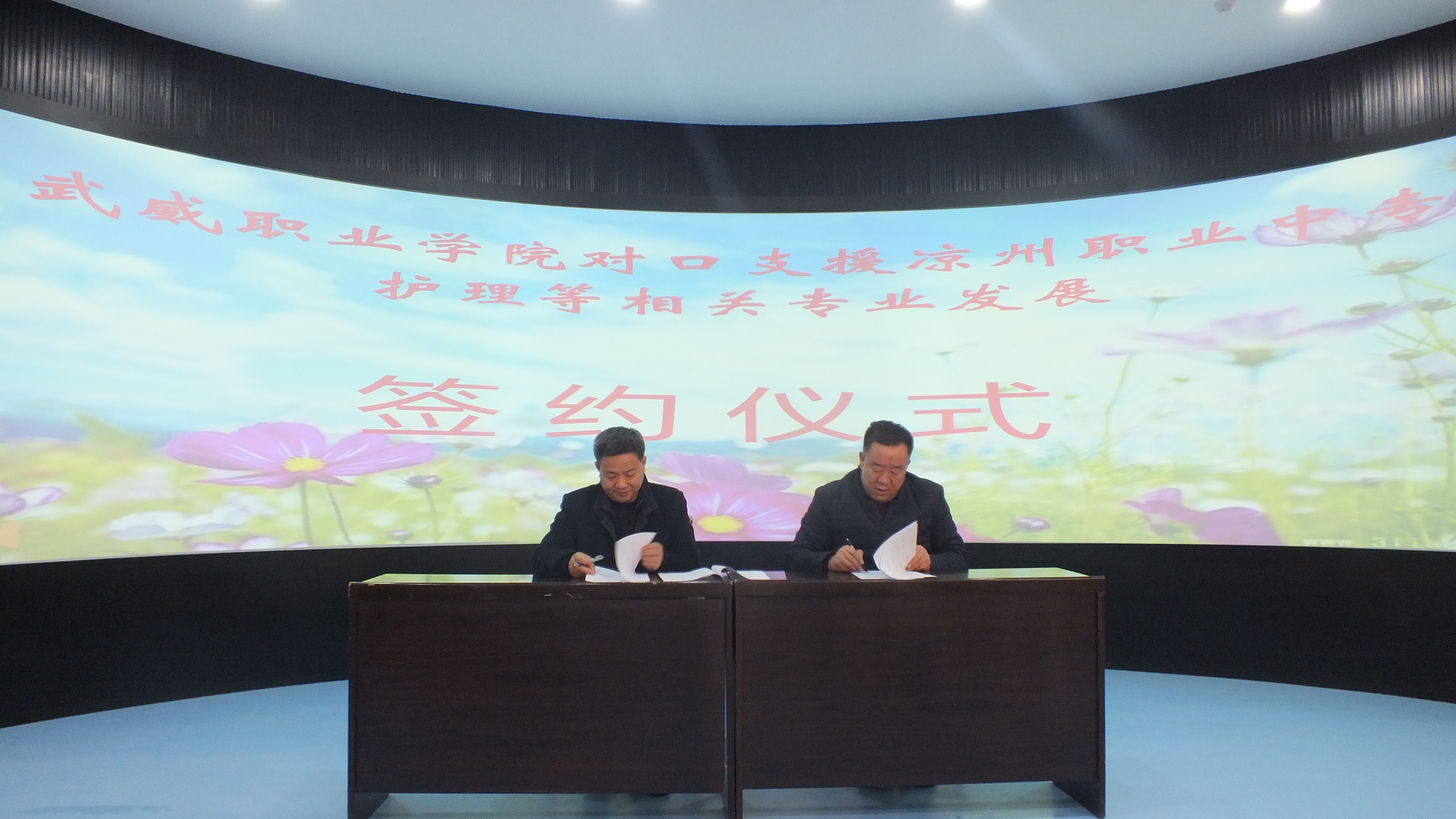 12月13日,學(xué)院與涼州區(qū)職業(yè)中專簽訂《武威職業(yè)學(xué)院對口支援涼州職業(yè)中專護理等相關(guān)專業(yè)發(fā)展協(xié)議》。學(xué)院黨委副書記趙明、護理系黨總支書記張建輝、涼州區(qū)職業(yè)中專校長何生玉,副校長張同禎、任鋒等參加了簽字儀式。