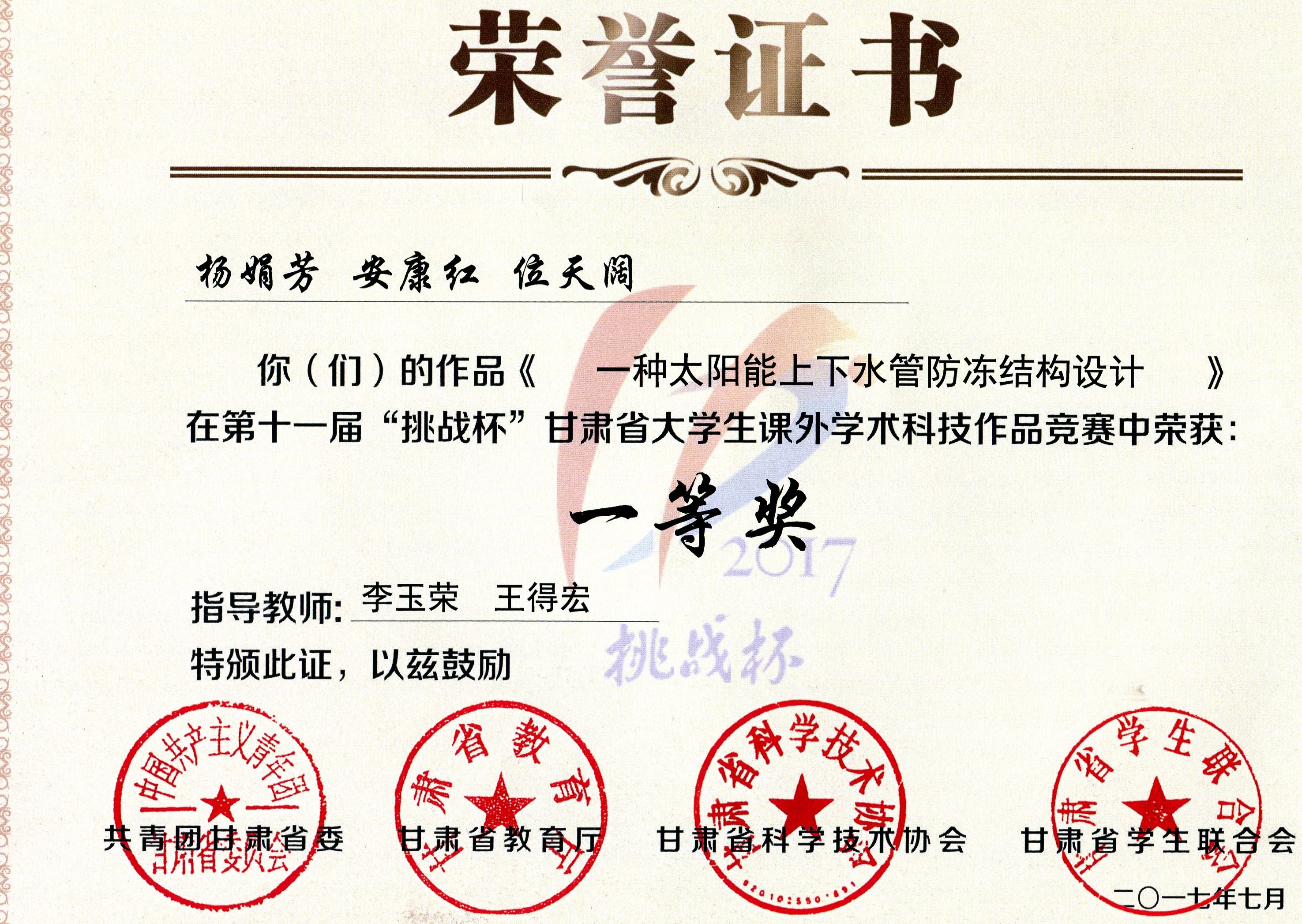 第十一屆“挑戰(zhàn)杯”甘肅省大學(xué)生課外學(xué)術(shù)科技作品競賽一等獎