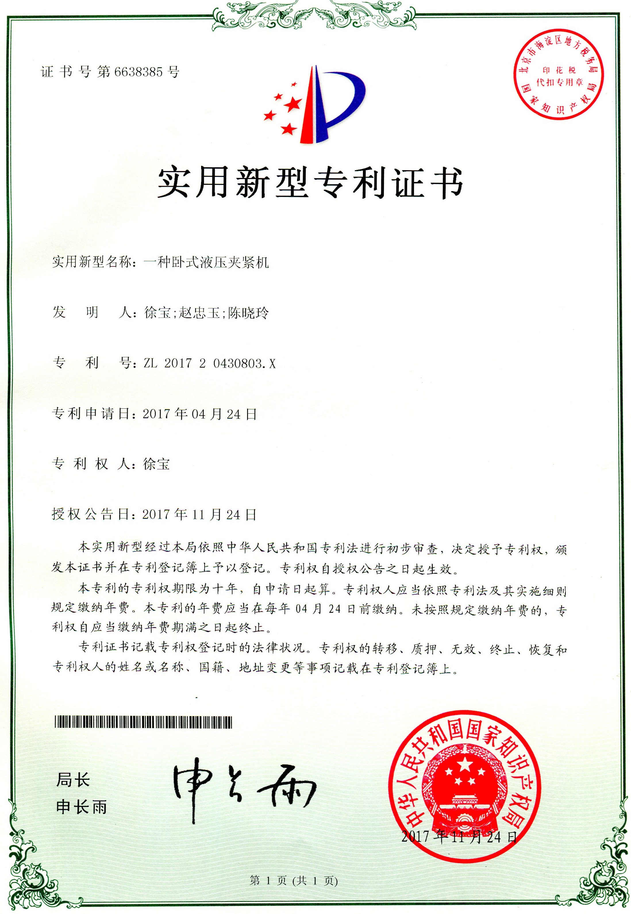 科研成果---實用新型專利:一種臥式液壓夾緊機(jī)