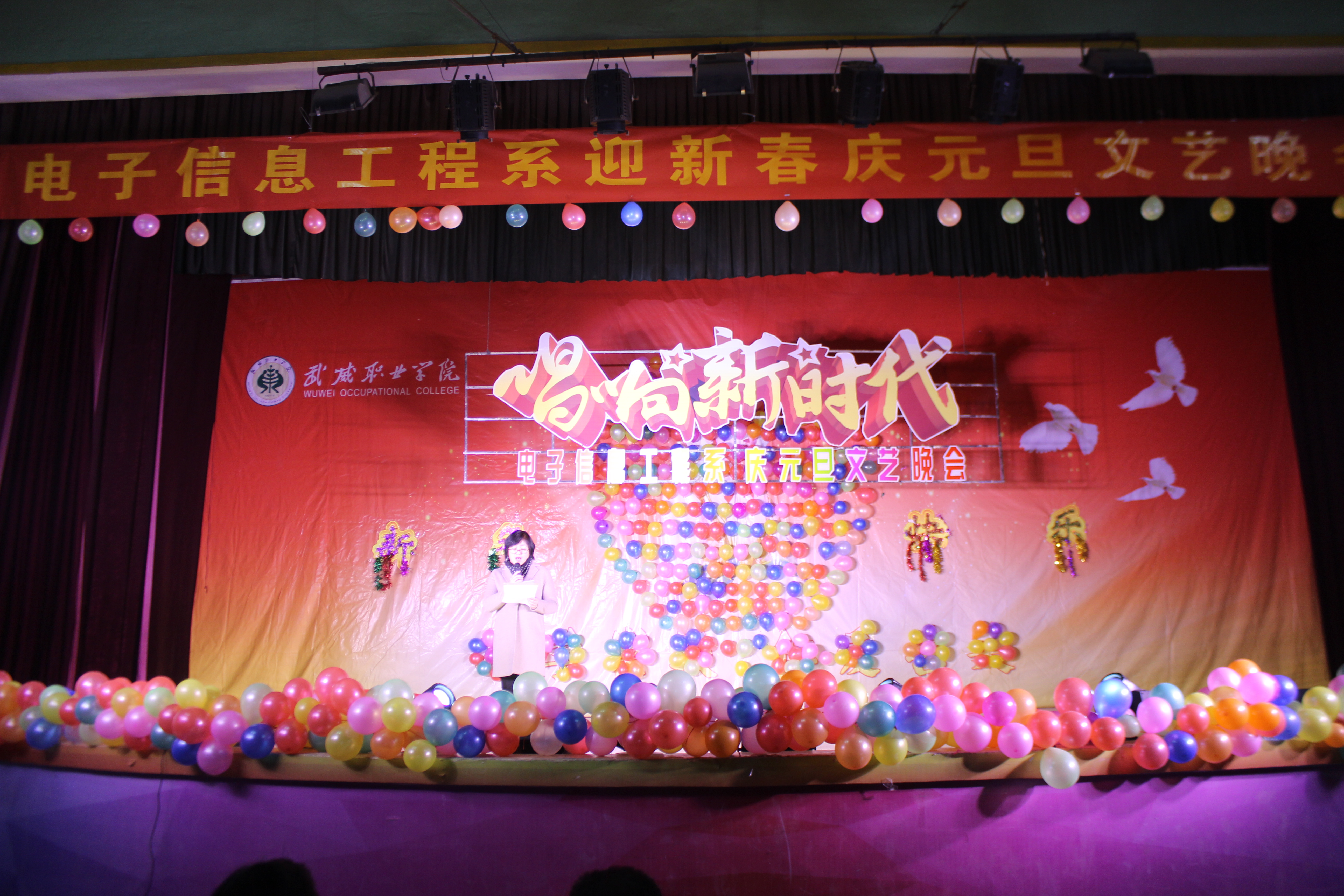 12月28日晚,電子信息工程系全體師生齊聚學院大禮堂,舉辦了以“唱響新時代”為主題的慶元旦文藝晚會。學院黨委委員、副院長王永緒作為特邀嘉賓觀看了演出。