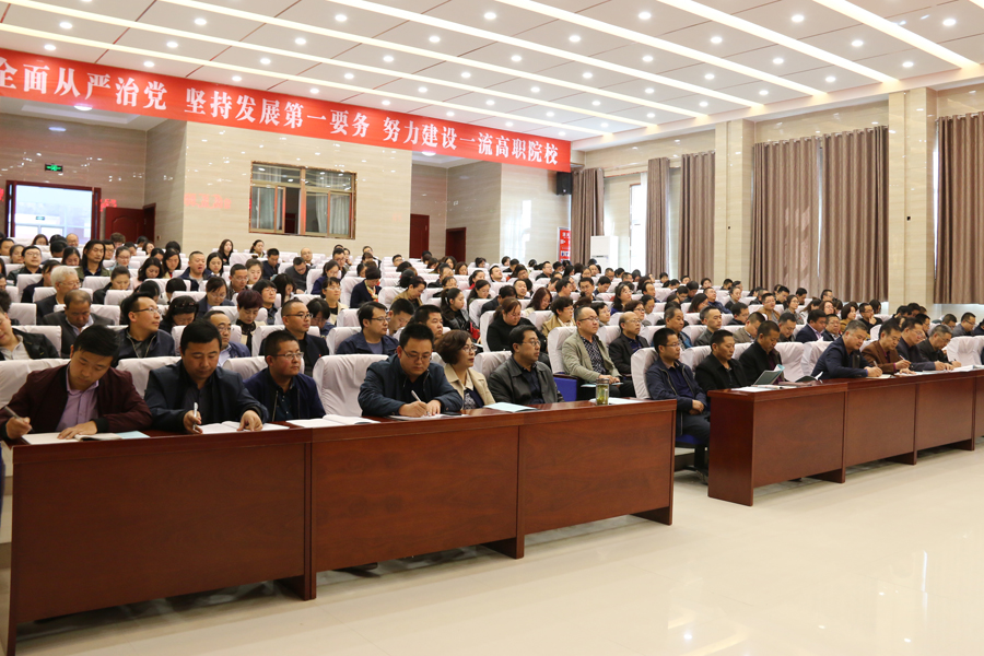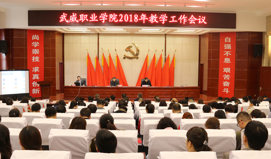 黨委副書記趙明對學(xué)院2017年教學(xué)工作做了簡要回顧與總結(jié),結(jié)合全國全省教育工作會議精神,深入分析了學(xué)院目前面臨的困難與存在的問題,從八個方面對2018年學(xué)院教學(xué)重點工作做了安排部署。一是加強思想政治建設(shè),貫徹落實中央決策部署。學(xué)習(xí)貫徹習(xí)近平新時代中國特色社會主義思想和黨的十九大精神,貫徹落實全國教育大會精神,細(xì)化落實職業(yè)教育具體工作措施。二是深化改革,增強辦學(xué)活力。堅持依法治校,繼續(xù)完善內(nèi)部治理體系,加強學(xué)術(shù)委員會、職稱評審委員會建設(shè),健全管理體系和運行機制,大力推進(jìn)人才培養(yǎng)模式改革和招生考試制度改革。三是強化內(nèi)涵,全力推進(jìn)優(yōu)質(zhì)高職院校建設(shè)。抓實推進(jìn)優(yōu)質(zhì)高職院校6個模塊19個項目94項任務(wù)312條子任務(wù)的建設(shè)工作,加強內(nèi)部協(xié)調(diào),全力推進(jìn)。加強專業(yè)內(nèi)涵建設(shè)和實踐教學(xué)內(nèi)涵建設(shè),建立一批優(yōu)質(zhì)特色專業(yè)和一批高水平生產(chǎn)性實訓(xùn)基地;積極開展創(chuàng)新創(chuàng)業(yè)教育實踐活動,加大社會培訓(xùn)力度,積極探索開展國際合作與交流;加強智慧校園和校園文化建設(shè)。四是優(yōu)化結(jié)構(gòu),全力打造一批高水平優(yōu)質(zhì)特色專業(yè)。利用直屬附屬醫(yī)院、校辦企業(yè)武威泰豐新能源有限責(zé)任、甘肅(武威)國際陸港和武威保稅物流中心等優(yōu)勢,加快重點專業(yè)建設(shè)力度,打造3~5個國家級高水平優(yōu)質(zhì)特色專業(yè)。五是合作培養(yǎng),著力打造專兼結(jié)合的高水平教師隊伍。大力實施教師素質(zhì)提升工程,完善同濟大學(xué)編制的《武威職業(yè)學(xué)院師資能力提升培訓(xùn)方案》,落實西安交通大學(xué)、天津職業(yè)大學(xué)簽訂的合作協(xié)議,推進(jìn)教師教學(xué)發(fā)展中心建設(shè)與運行,強化專業(yè)帶頭人、新進(jìn)教師、骨干教師、優(yōu)秀青年教師的培養(yǎng)力度。六是育人為本,關(guān)注學(xué)生成長成才。優(yōu)化育人環(huán)境,開足開好思想政治類、人文素養(yǎng)提升類課程,開展校內(nèi)職業(yè)技能競賽,鼓勵支持參加省級以上比賽,培養(yǎng)學(xué)生能力。七是深化產(chǎn)教融合,提升社會服務(wù)水平。充分發(fā)揮職業(yè)教育集團(tuán)作用,深化“職業(yè)教育+產(chǎn)業(yè)園區(qū)+生產(chǎn)基地”的校企合作模式;提升校辦企業(yè)、直屬附屬醫(yī)院的教學(xué)服務(wù)功能;各專業(yè)要拓展產(chǎn)教融合渠道,精準(zhǔn)施策,服務(wù)國家戰(zhàn)略。八是完善質(zhì)量保障機制,提升人才培養(yǎng)質(zhì)量。編制并逐步推行教學(xué)工作診斷與改進(jìn)方案,學(xué)習(xí)實施精細(xì)化管理模式,加大教學(xué)督查力度,規(guī)范教學(xué)秩序,提高教育教學(xué)管理水平。
