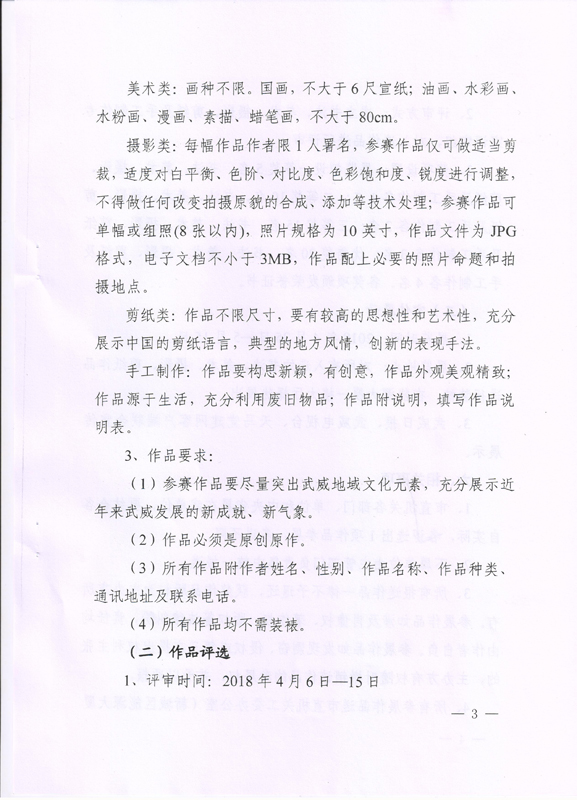 現(xiàn)將中共武威市委宣傳部、中共武威市直屬機關(guān)工作委員會《關(guān)于舉辦市直機關(guān)“不忘初心? 牢記使命”藝術(shù)作品展的通知》(武市直發(fā)〔2018〕9號)轉(zhuǎn)發(fā)你們,請各部門、單位根據(jù)要求認真組織,積極參與。將參賽作品于4月2日前報宣傳統(tǒng)戰(zhàn)部辦公室,宣傳統(tǒng)戰(zhàn)部對報送作品匯總后統(tǒng)一報送市直屬機關(guān)工委。