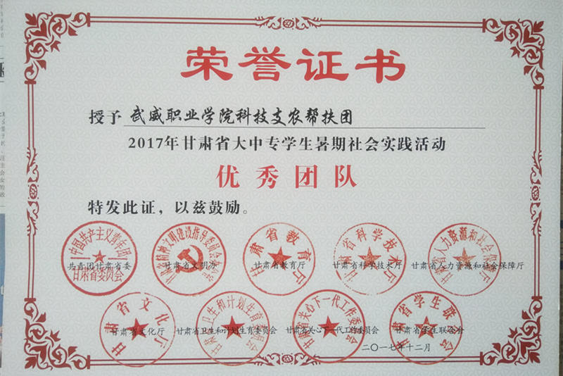 活動(dòng)結(jié)束后,根據(jù)《關(guān)于開(kāi)展2017年甘肅省大中專學(xué)生志愿者暑期文化科技衛(wèi)生“三下鄉(xiāng)”社會(huì)實(shí)踐活動(dòng)的通知》要求,我系組織的科技支農(nóng)幫扶團(tuán)集體和個(gè)人被評(píng)為甘肅省暑期“三下鄉(xiāng)”社會(huì)實(shí)踐活動(dòng)先進(jìn)集體和個(gè)人。