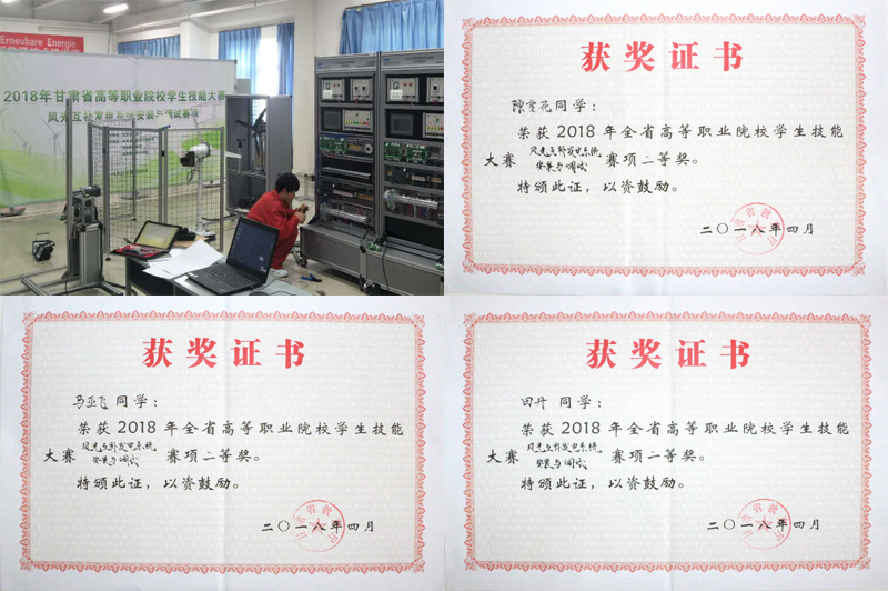 ? ? 4月22日-23日,由甘肅省教育廳主辦的2018年全國職業(yè)院校技能大賽“風(fēng)光互補(bǔ)發(fā)電系統(tǒng)安裝與調(diào)試”賽項甘肅省選拔賽在酒泉職業(yè)技術(shù)學(xué)院舉行,由我院能源工程系黃述杰、張國祥擔(dān)任指導(dǎo)教師,學(xué)生馬亞飛、陳雪花、田丹組成的武威職業(yè)學(xué)院代表隊再獲佳績榮獲二等獎。
