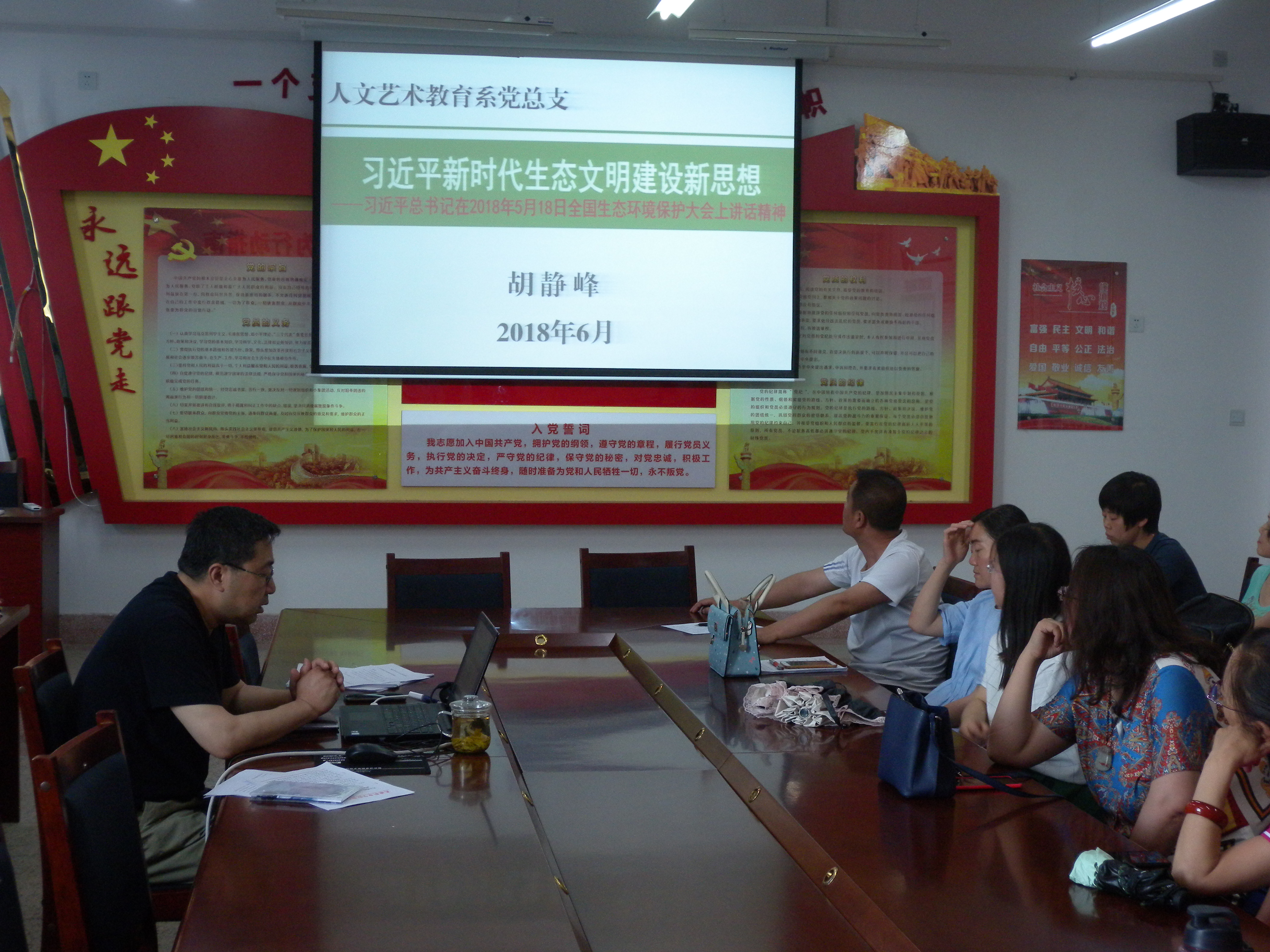 為深入學(xué)習(xí)習(xí)近平新時(shí)代中國(guó)特色社會(huì)主義思想,人文藝術(shù)教育系黨總支于6月13日下午在勵(lì)勤樓209黨員活動(dòng)室開(kāi)展書記講黨課活動(dòng)。黨課由系黨總支書記胡靜峰主講,題目為《習(xí)近平新時(shí)代生態(tài)文明建設(shè)新思想》,系全體黨員參加了此次活動(dòng)。