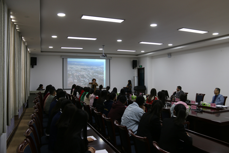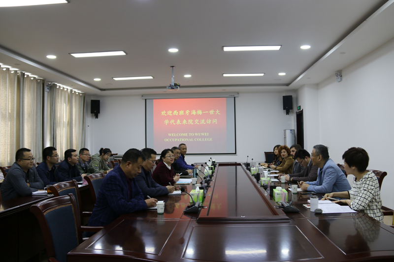 座談會(huì)上,田迎春代表全院師生對(duì)海梅一世大學(xué)到訪學(xué)院表示歡迎,對(duì)省國際交流與合作服務(wù)中心對(duì)學(xué)院的關(guān)心表示感謝,并向來訪客人簡要介紹了武威文化歷史、學(xué)院建設(shè)發(fā)展情況、學(xué)院國際交流與合作開展情況。來訪客人對(duì)學(xué)院近年來的巨大發(fā)展表示贊賞,對(duì)學(xué)院國際交流與合作開展工作表示肯定。Ana女士通過PPT展示介紹了海梅一世大學(xué),希望雙方進(jìn)一步進(jìn)行合作。賓主雙方還就校際交流、語言培訓(xùn)、赴西班牙專升碩留學(xué)項(xiàng)目等共同關(guān)心的問題進(jìn)行了深入交流。