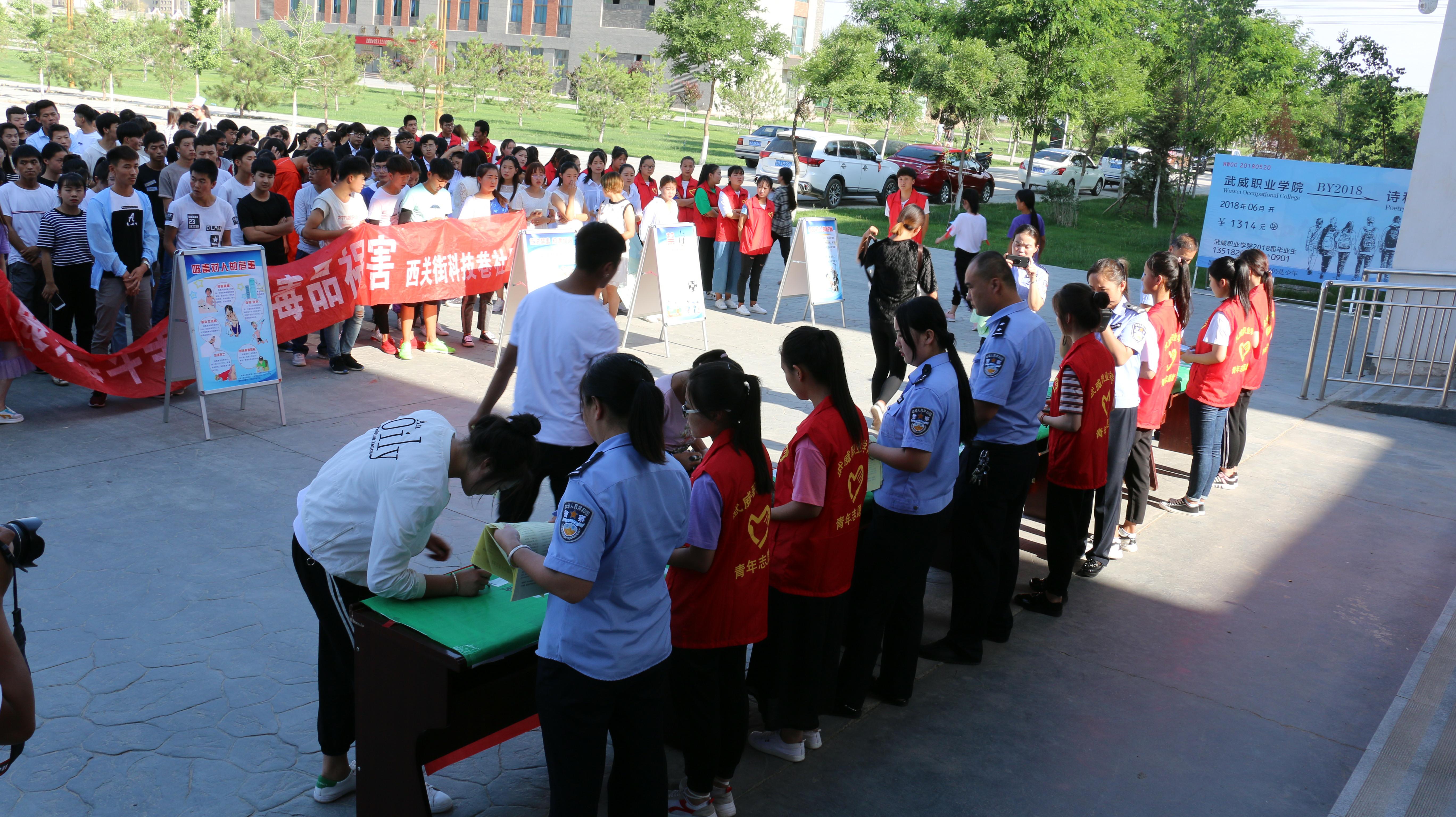 宣傳活動(dòng)以“健康人生.綠色無(wú)毒”為主題,通過(guò)禁毒志愿者代表宣讀禁毒倡議書(shū),不涉毒承諾簽名活動(dòng)、發(fā)放宣傳資料、展示禁毒宣傳展板等形式,讓廣大青年學(xué)生更深刻地認(rèn)識(shí)到“毒品”這一社會(huì)公害給個(gè)人、家庭、社會(huì)帶來(lái)的危害,旨在提高廣大青年學(xué)生識(shí)毒、防毒、拒毒意識(shí)和參與禁毒人民戰(zhàn)爭(zhēng)的積極性。
