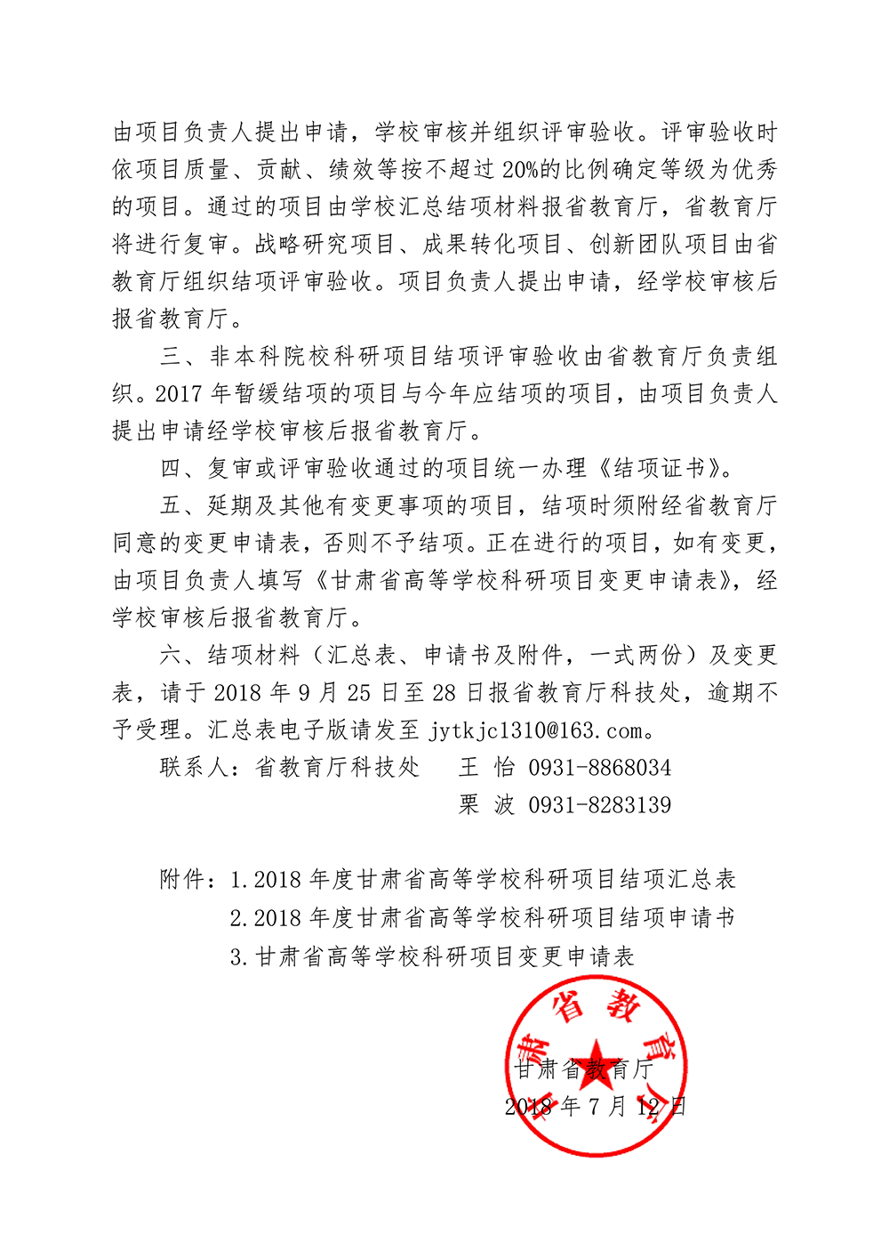 甘肅省教育廳關(guān)于對2018年度甘肅省高等學(xué)??蒲许椖窟M(jìn)行結(jié)項的通知(附件).doc