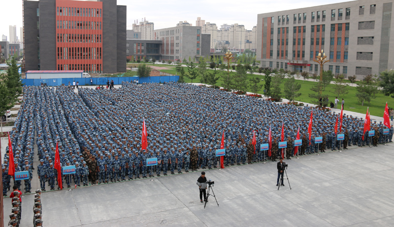 大會(huì)現(xiàn)場(chǎng),田迎春向承訓(xùn)單位授予軍訓(xùn)團(tuán)旗。大會(huì)在雄壯的《中國(guó)人民解放軍軍歌》聲中拉開了軍訓(xùn)序幕。