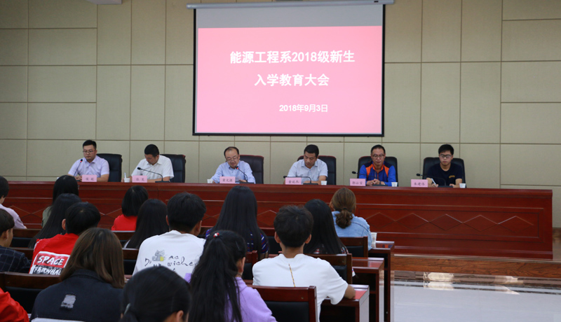 9月3日下午,能源工程系在行樹樓北側報告廳舉行2018級新生入學教育大會,全系教師及2018級166名新生參加了此次大會。會議由能源工程系政治輔導員、團總支書記侯舵主持。
