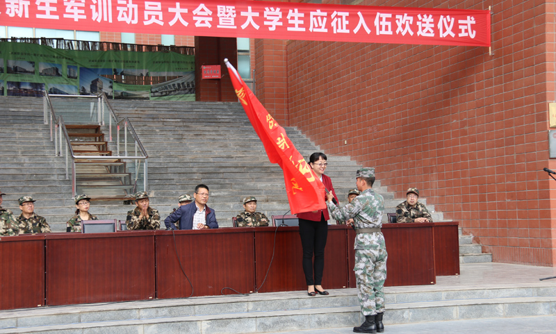 大會(huì)現(xiàn)場,田迎春向承訓(xùn)單位授予軍訓(xùn)團(tuán)旗。大會(huì)在雄壯的《中國人民解放軍軍歌》聲中拉開了軍訓(xùn)序幕。