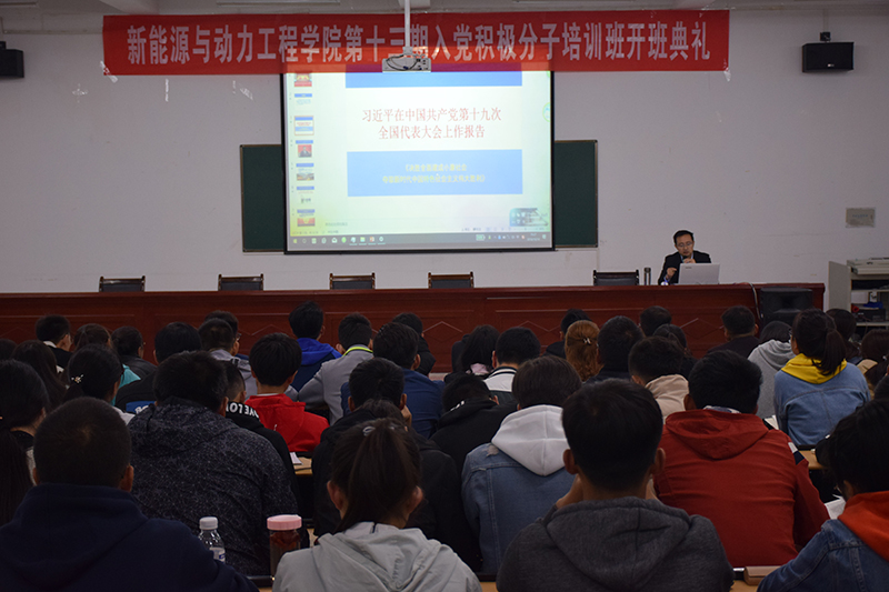 10月14日晚,新能源學(xué)院辦公室黨支部書(shū)記任陶在明德樓001教室作學(xué)習(xí)黨的十九大精神主題報(bào)告,98名入黨積極分子和45名發(fā)展對(duì)象認(rèn)真聆聽(tīng)了此次報(bào)告。