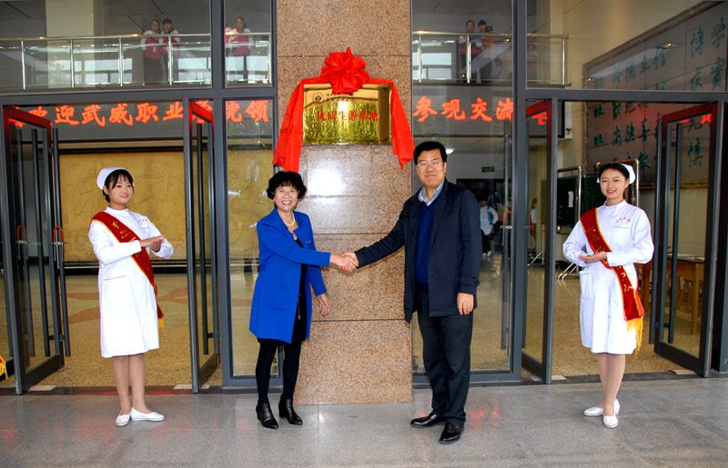 10月21日在天水市衛(wèi)生學(xué)校,潘玉華和天水衛(wèi)校校長(zhǎng)毛如君為“武威職業(yè)學(xué)院優(yōu)質(zhì)生源基地”揭牌,天水衛(wèi)校校領(lǐng)導(dǎo)班子成員和相關(guān)處室負(fù)責(zé)人參加了揭牌儀式。之后毛如君介紹了學(xué)校發(fā)展情況和校園整體規(guī)劃,并陪同潘玉華一行參觀了學(xué)校的教學(xué)樓、實(shí)驗(yàn)實(shí)訓(xùn)樓、學(xué)生公寓、學(xué)生食堂等教學(xué)設(shè)施和生活環(huán)境。