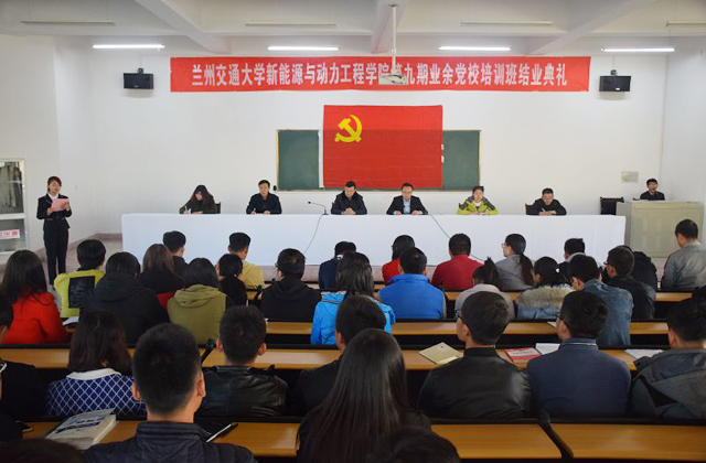 結(jié)業(yè)典禮由任陶主持。高蕊宣讀了《蘭州交通大學(xué)新能源與動(dòng)力工程學(xué)院關(guān)于第九期業(yè)余黨校培訓(xùn)班結(jié)業(yè)情況的通報(bào)》。本次培訓(xùn)歷時(shí)半個(gè)多月,共有120名學(xué)員參加培訓(xùn),保證24學(xué)時(shí)的教學(xué)。通過課堂紀(jì)律、上課考勤、撰寫心得體會(huì)和結(jié)業(yè)考試等方面的考查,共有40名擬發(fā)展對(duì)象和73名入黨積極分子成績合格,予以結(jié)業(yè),合格率為94.17%。任陶宣讀了本次培訓(xùn)成績合格的學(xué)員名單。學(xué)員代表孟杰同學(xué)在發(fā)言中總結(jié)了在業(yè)余黨校學(xué)習(xí)的收獲,表示在今后要努力學(xué)習(xí),積極工作,嚴(yán)格要求自己,明確追求與理想,不懈拼搏,爭取早日成為一名光榮的中國共產(chǎn)黨黨員。