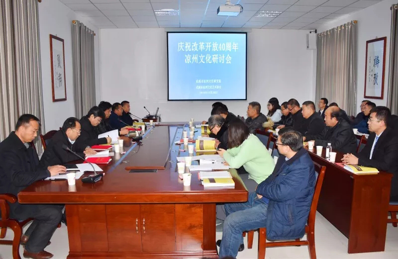 12月20日,武威市涼州文化研究院、涼州文化藝術協會共同舉辦慶祝改革開放40周年涼州文化研討會。市委常委、副市長張志強出席會議并講話,市委宣傳部、市文廣局、市文聯、武威日報社、市志辦、市博物館、武威職業(yè)學院等單位的40余名專家、文史研究工作者參加研討會。