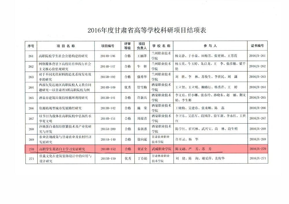 轉(zhuǎn)發(fā)甘肅省教育廳關于2016年度甘肅省高等學??蒲许椖拷Y(jié)項情況的通知