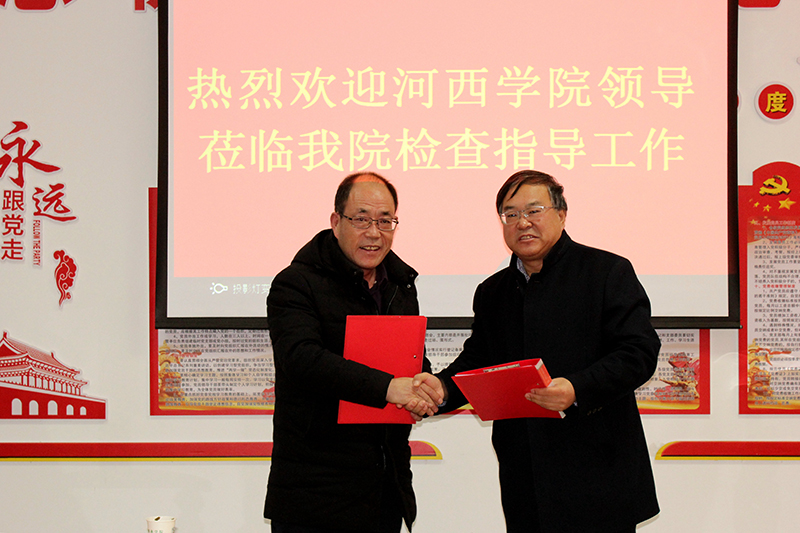 為促進(jìn)高等教育和中醫(yī)藥事業(yè)健康發(fā)展,2019年1月9日上午10時,武威職業(yè)學(xué)院附屬中醫(yī)醫(yī)院內(nèi)科一樓會議室里歡聲笑語,喜氣洋洋,河西學(xué)院與武威職業(yè)學(xué)院附屬中醫(yī)醫(yī)院建立非直屬附屬醫(yī)院簽約授牌儀式正在這里隆重舉行。