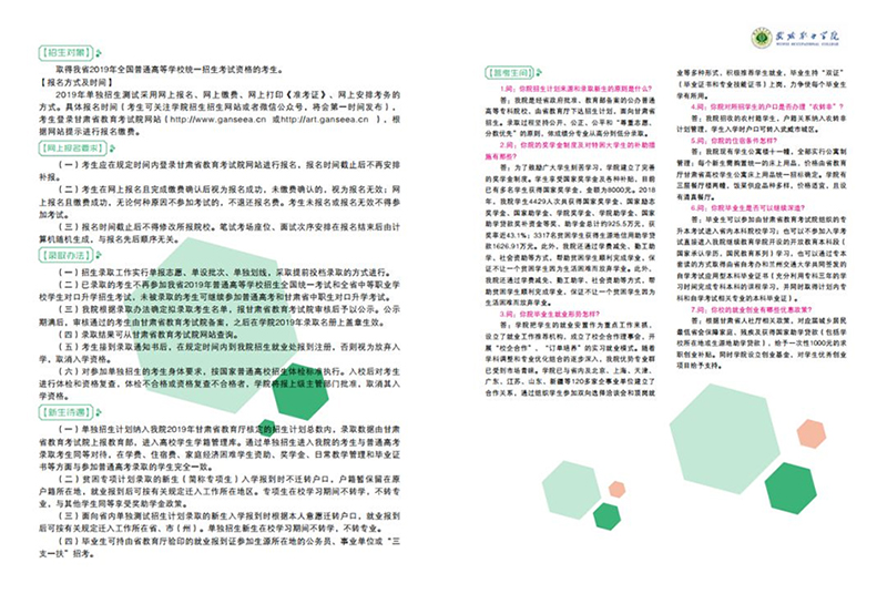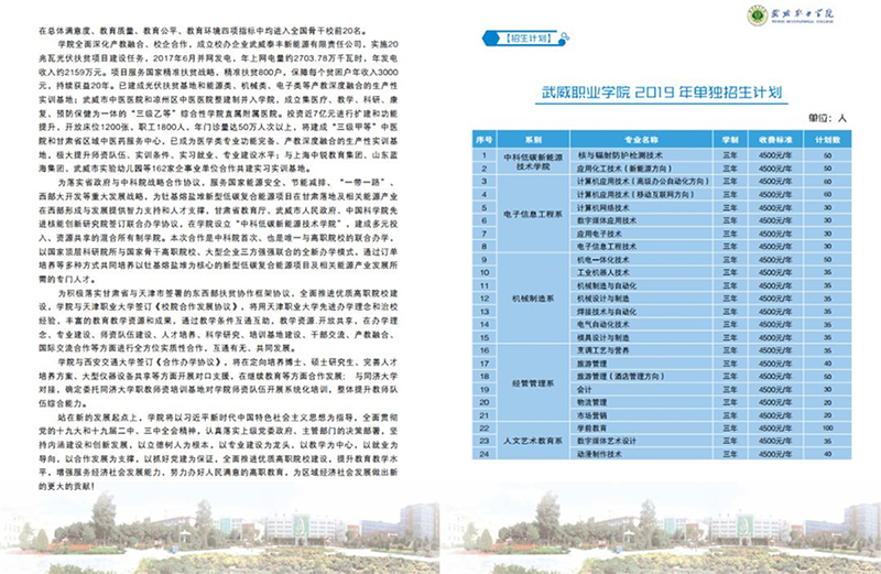 武威職業(yè)學(xué)院2019年單獨(dú)招生簡(jiǎn)章(圖文版)