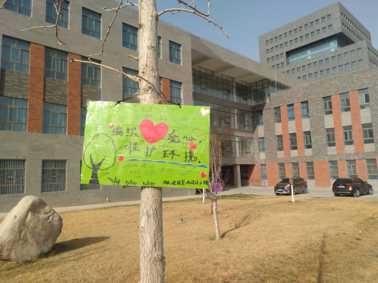 ? ?為助力創(chuàng)建文明城市,構(gòu)建文明綠色環(huán)保校園。4月2日建筑工程系學(xué)生分會聯(lián)合各班級在環(huán)境區(qū)域設(shè)立愛護校園草坪的標(biāo)語牌活動。 ? ? ?