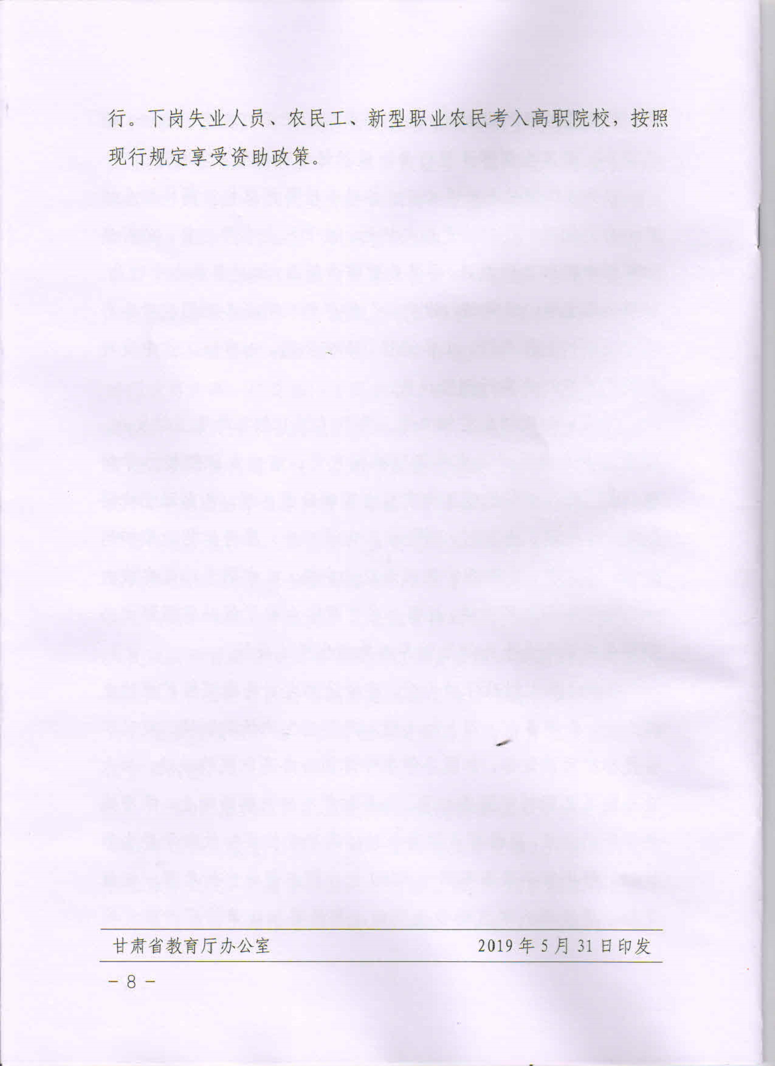 19年關(guān)于做好2019年甘肅省高等職業(yè)教育擴(kuò)招專項(xiàng)考試招生工作的通知
