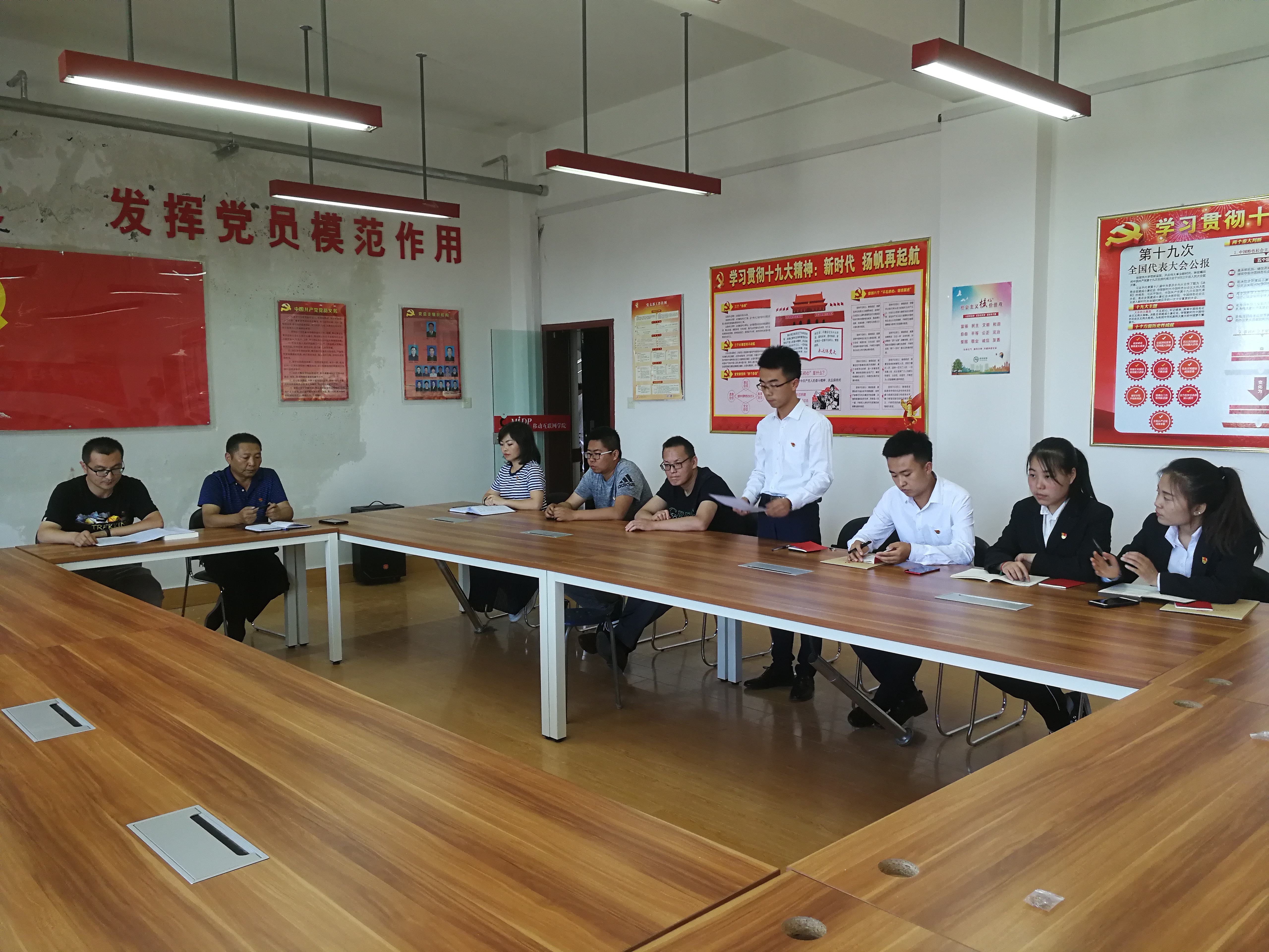 會(huì)議開(kāi)始,電子及網(wǎng)絡(luò)黨支部書記唐宗舜宣讀了預(yù)備黨員名單并介紹了預(yù)備黨員基本情況。宣誓儀式在莊嚴(yán)雄渾的《國(guó)際歌》旋律中開(kāi)始,唐宗舜同志代表電子信息工程系黨總支全體黨員向新加入黨員隊(duì)伍的4名新黨員表示衷心的祝賀和熱烈的歡迎。