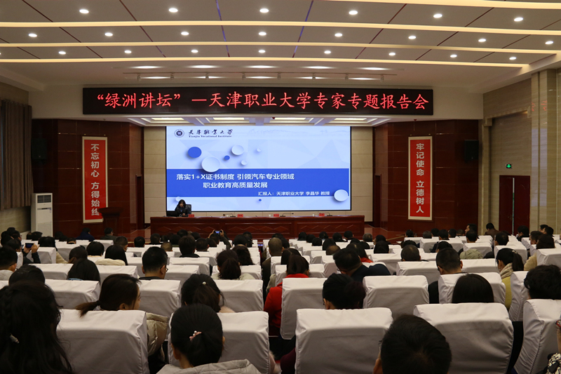 報告會上,天津職業(yè)大學(xué)副校長楊榮敏、天津職業(yè)大學(xué)合作教育辦公室王昆教授、天津職業(yè)大學(xué)汽車工程學(xué)院院長、博士、汽車維修技師李晶華教授分別做了題為《魯班工坊——中國職業(yè)教育國際知名品牌》《產(chǎn)業(yè)學(xué)院融入思政元素路徑與實踐》《落實1+X證書制度,引領(lǐng)汽車專業(yè)領(lǐng)域職業(yè)教育高質(zhì)量發(fā)展》的報告。學(xué)院領(lǐng)導(dǎo)和副科級以上中層管理干部、各系教研室主任、骨干教師、青年教師代表參加報告會。
