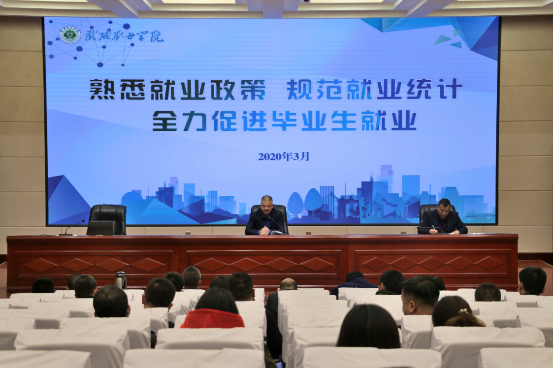 為進(jìn)一步促進(jìn)學(xué)院畢業(yè)生就業(yè)工作,加強(qiáng)就業(yè)工作服務(wù)水平,做好就業(yè)統(tǒng)計(jì)工作。根據(jù)院黨委安排部署,3月31日在大學(xué)生活動(dòng)中心菁英廳召開了2020屆畢業(yè)生就業(yè)工作促進(jìn)會(huì)。黨委委員、副院長王守云,各系黨總支書記、主任、副主任、就業(yè)干事、輔導(dǎo)員、2017級(jí)全體班主任及招就處、雙創(chuàng)中心工作人員共110人參加會(huì)議,招生就業(yè)處處長蔡柱山主持會(huì)議。