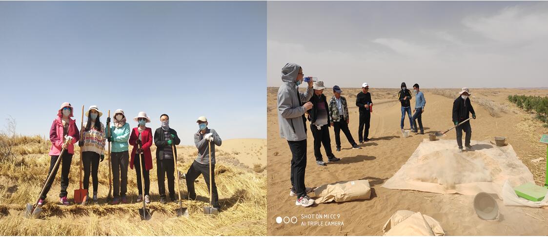 由我院與中科武威新能源研究所合作的淀粉基超級(jí)吸水材料在沙漠植保工程示范試驗(yàn)項(xiàng)目組成員自4月8日起已陸續(xù)赴武威園區(qū)、民勤縣青土湖,涼州區(qū)長(zhǎng)城鎮(zhèn)、古浪八步沙等地推廣應(yīng)用工作,陸續(xù)實(shí)施壓沙、沙生苗木種植、植被樣點(diǎn)監(jiān)測(cè)等,截至目前累計(jì)完成壓沙任務(wù)300畝,苗木種植任務(wù)220畝。