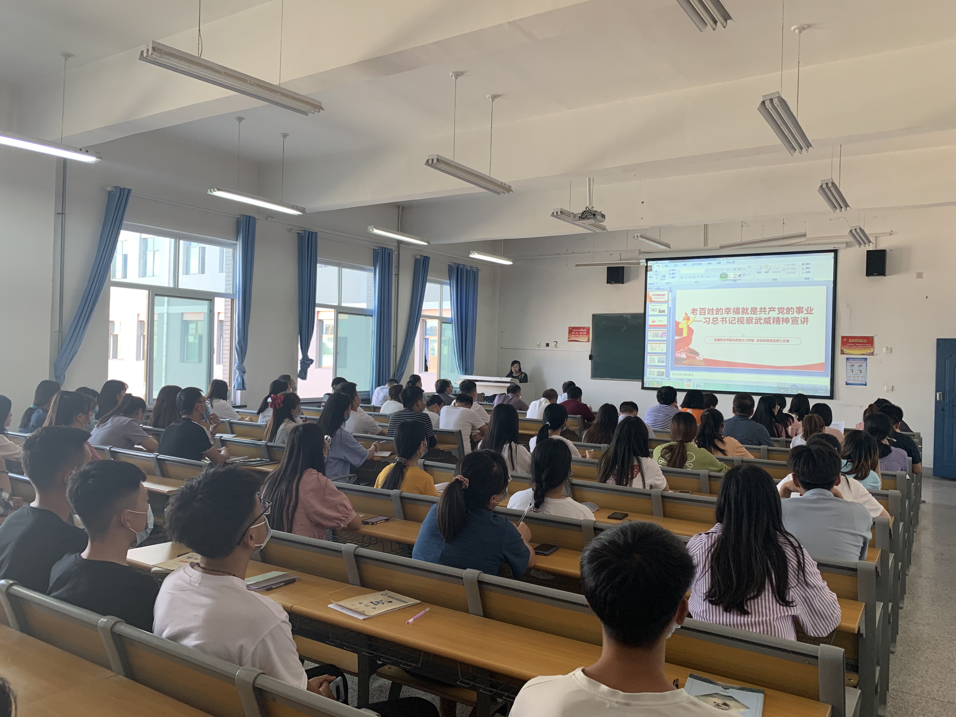 王靜老師圍繞習(xí)近平總書記視察甘肅,特別是2019年8月21日視察古浪縣黃花灘移民區(qū)富民新村社區(qū)和八步沙林場時(shí)的重要講話和指示精神,向廣大師生展開深入宣講,闡釋解讀習(xí)近平總書指出的“老百姓的幸福就是共產(chǎn)黨的事業(yè)”的本質(zhì)內(nèi)涵,使習(xí)近平總書記對(duì)武威人民的情感關(guān)懷深入人心。