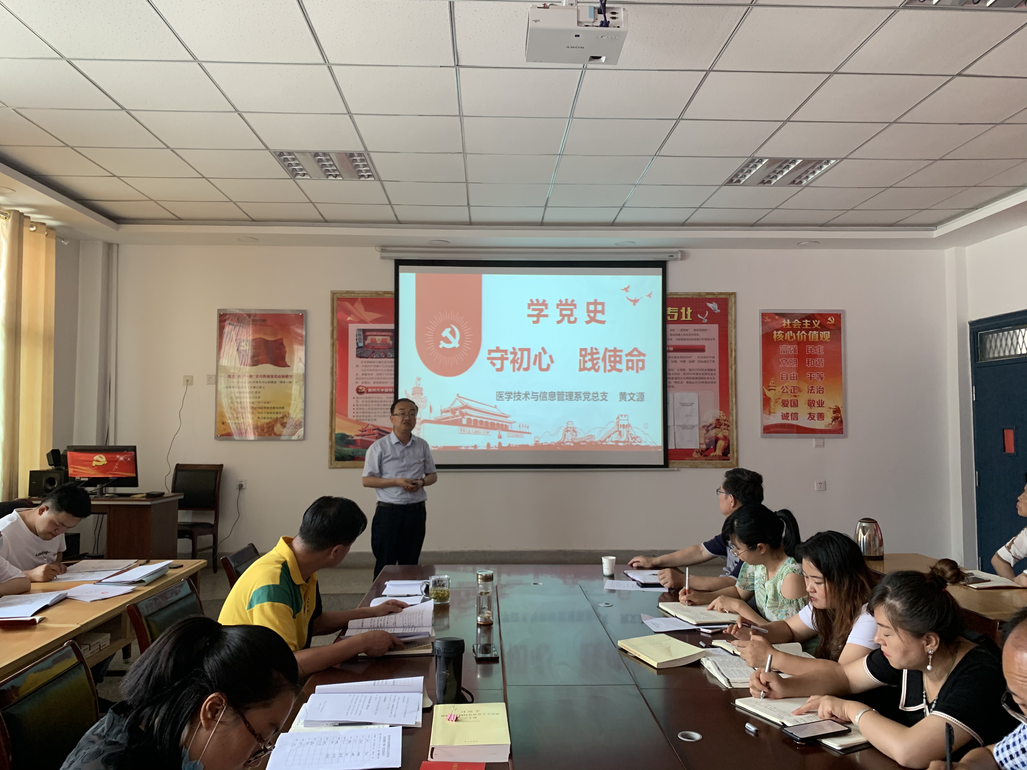 為繼承和弘揚(yáng)黨的優(yōu)良傳統(tǒng),進(jìn)一步提高黨組織的凝聚力和戰(zhàn)斗力,增強(qiáng)黨員的責(zé)任感和使命感,7月8日下午,醫(yī)學(xué)技術(shù)學(xué)院黨總支書(shū)記黃文源為系全體黨員上了一堂題為《學(xué)黨史、守初心、踐使命》的專(zhuān)題黨課。