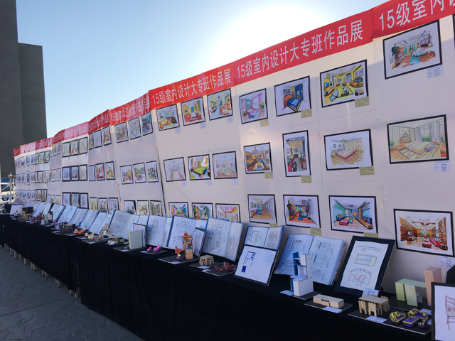 此次展覽共計展出作品1000余件,由學前教育、室內設計和數(shù)字媒體3個專業(yè)學生共同展出,涉及到裝飾畫、平面構成、立體構成、家具陳設、室內設計制圖與手繪效果表現(xiàn)等6門課程,作品內容豐富,形式多樣,充分展示了學生們的藝術創(chuàng)作風采。