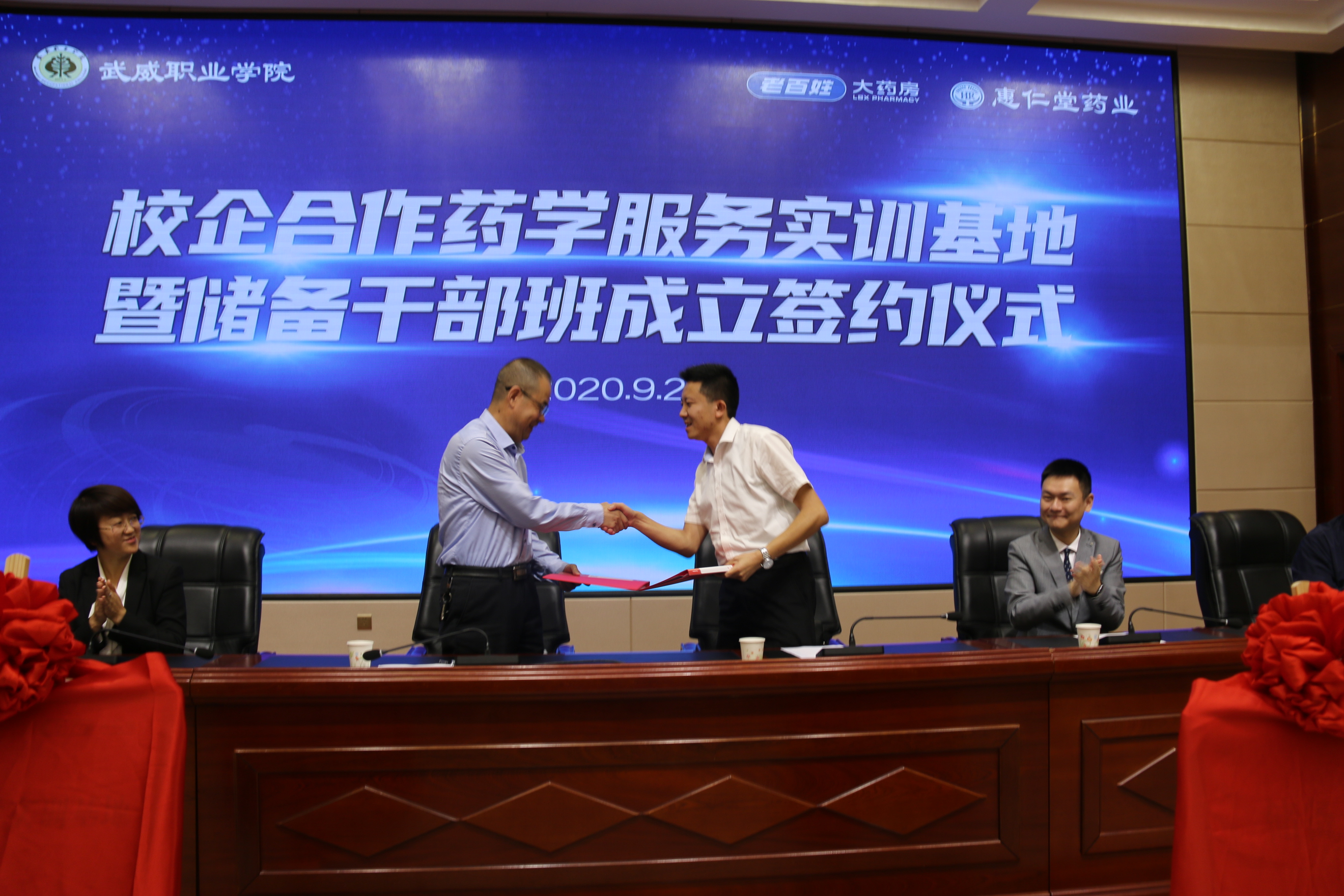 此次合作協(xié)議的簽署,標(biāo)志著武威職業(yè)學(xué)院藥學(xué)系與老百姓大藥房集團(tuán)、蘭州惠仁堂藥業(yè)連鎖有限責(zé)任公司攜手創(chuàng)建的校企合作藥學(xué)服務(wù)實(shí)訓(xùn)基地的正式成立,有利于學(xué)校培養(yǎng)創(chuàng)新應(yīng)用型人才,提高人才培養(yǎng)質(zhì)量。