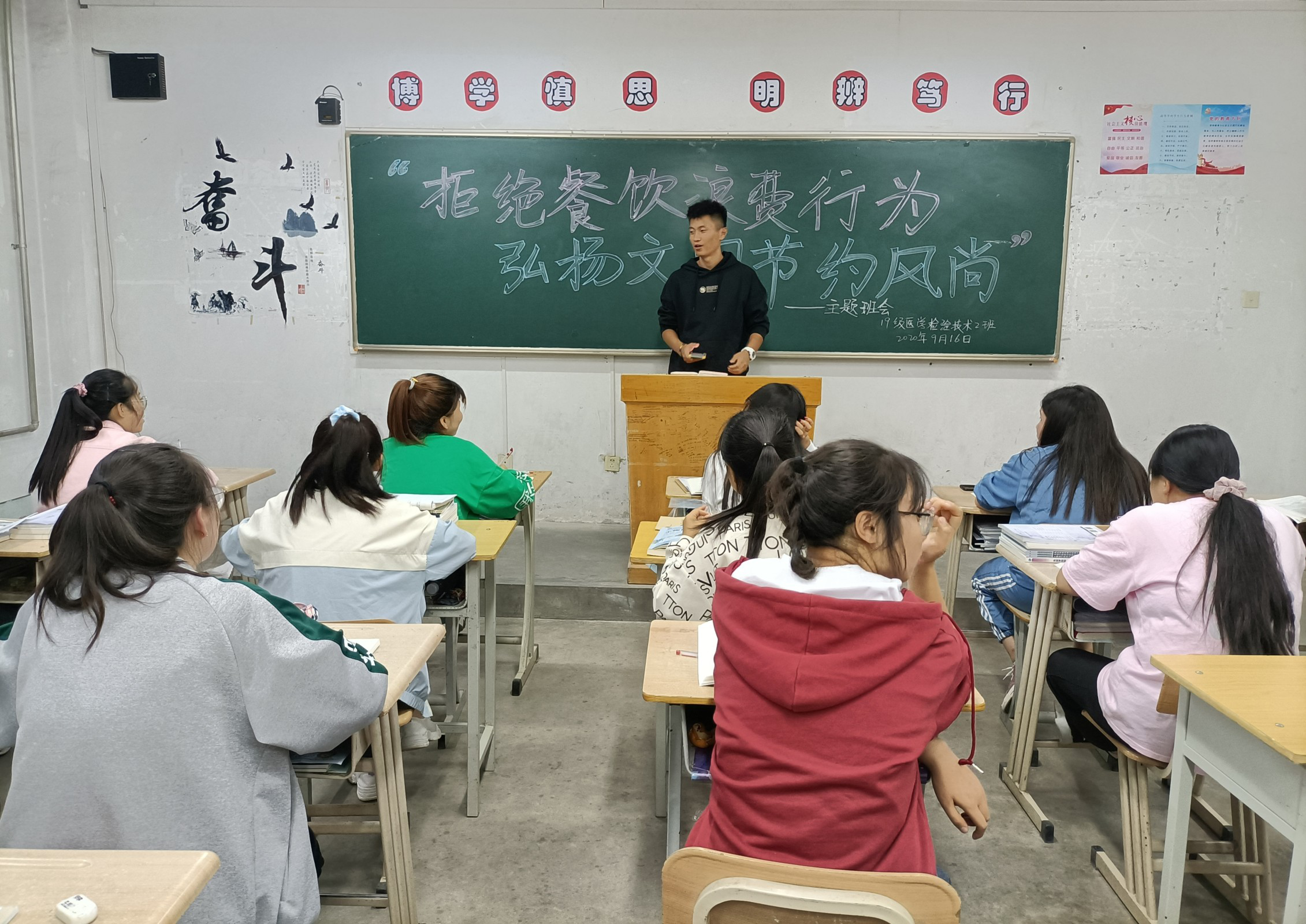 為深入貫徹落實習近平總書記關(guān)于制止餐飲浪費行為的重要指示精神,確?!肮獗P行動”取得實效,進一步引導(dǎo)我系學生大力弘揚勤儉節(jié)約傳統(tǒng)美德,培養(yǎng)勤儉節(jié)約良好習慣,全力營造“浪費可恥、節(jié)約光榮”的濃厚氛圍,醫(yī)學技術(shù)與信息管理系于9月16日各教學班召開主題班會活動。