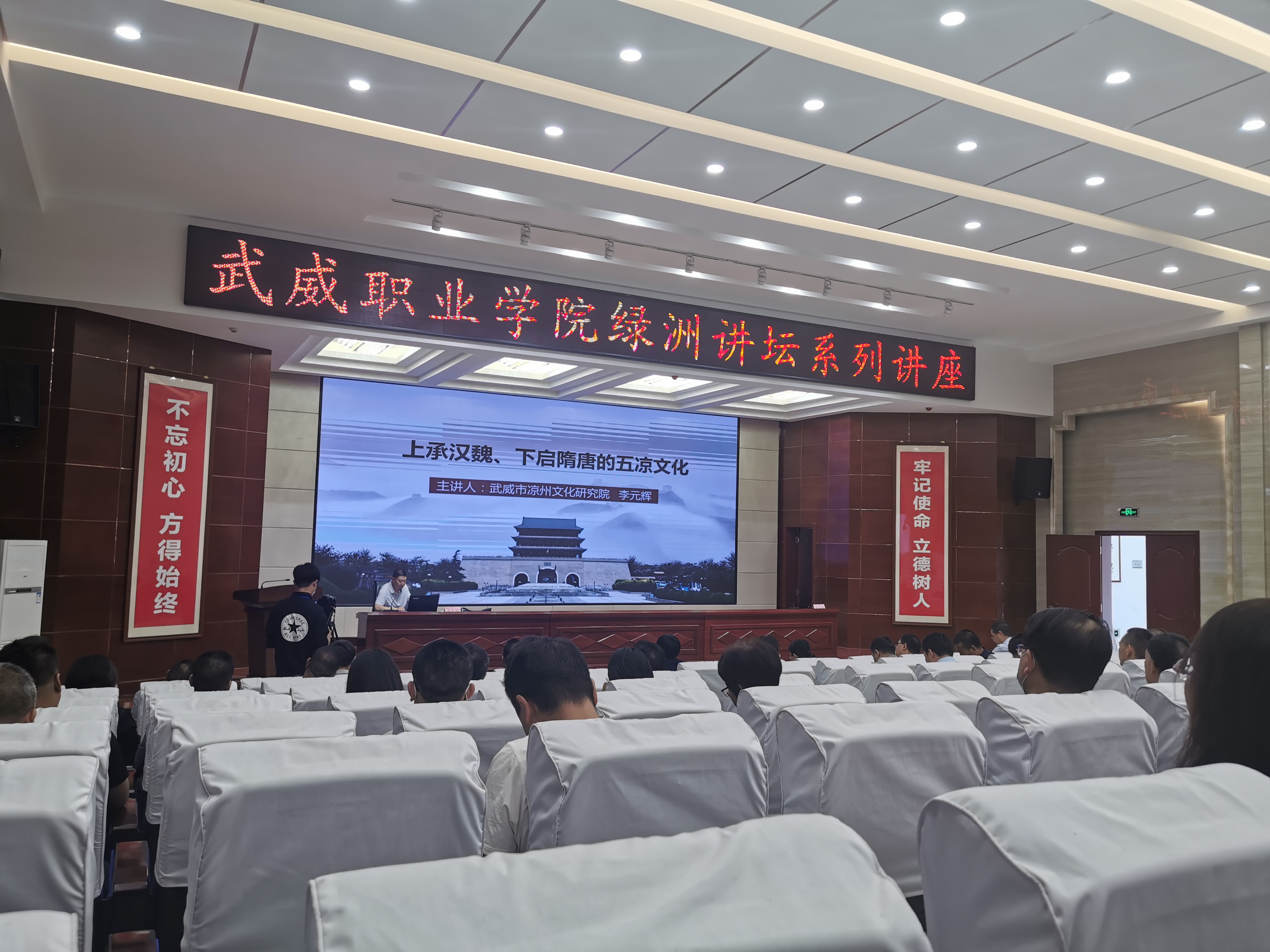 李元輝研究員圍繞“走進武威,觸摸五涼;五涼興亡,百年滄桑;承前啟后,繼絕扶衰;文脈綿延,繼往開來”等方面講述了涼州文化的獨特稟賦、鮮明特征和豐富內涵,以及對中國歷史文化的深遠影響、對中原傳統(tǒng)文化的繼承和創(chuàng)新,為學院師生分享了一場期待已久的文化盛宴和精神大餐。
