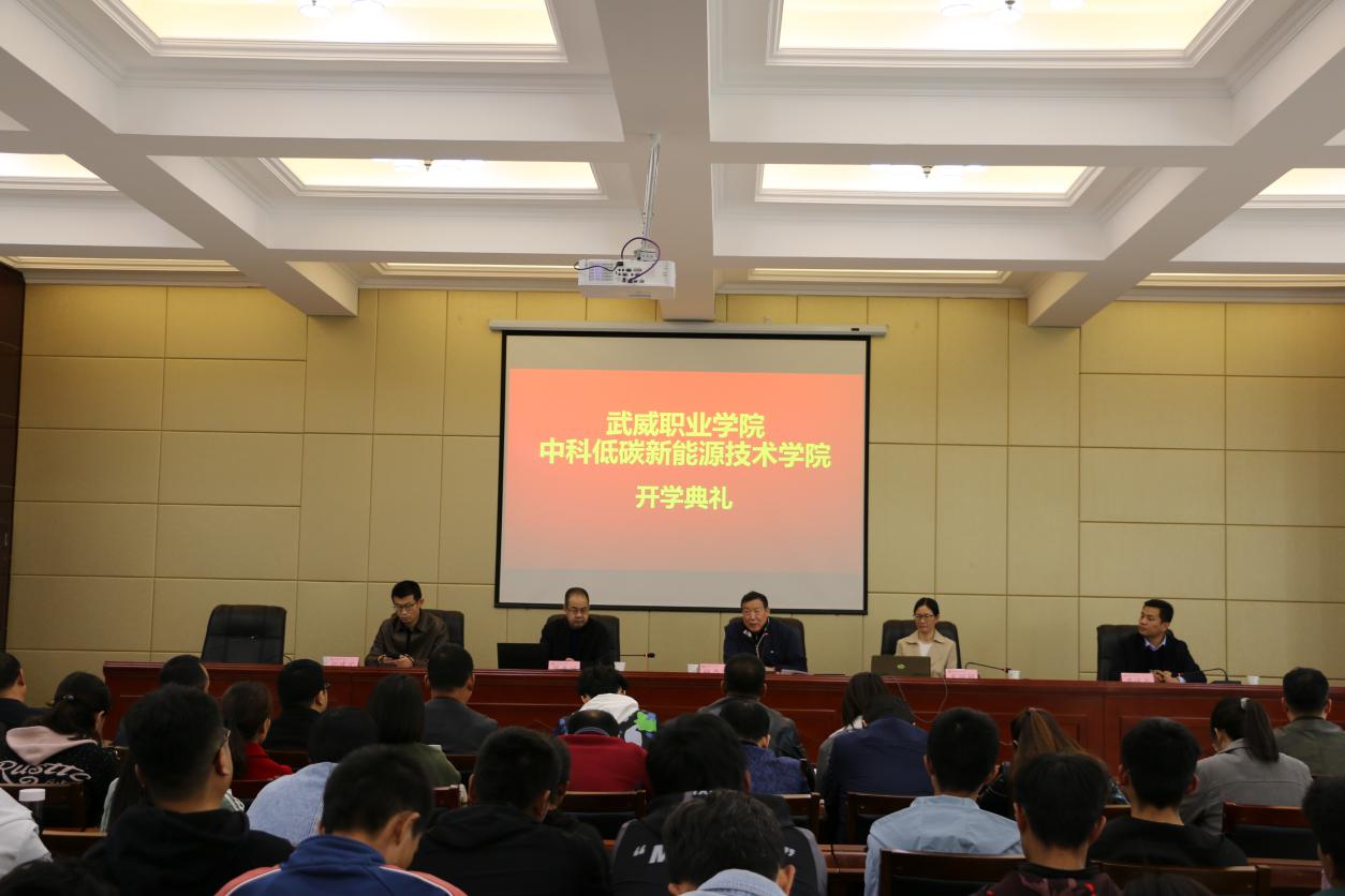 ??10月29日下午,中科低碳新能源技術(shù)學院在行樹樓北側(cè)報告廳召開2020級新生開學典禮。中國科學院先進核能創(chuàng)新研究院高級教育顧問、中科低碳新能源技術(shù)學院院長楊存忠教授,武威職業(yè)學院黨委副書記、中科低碳新能源技術(shù)學院副院長翟存祥教授,中國科學院上海應用物理研究所副研究員、中科低碳新能源技術(shù)學院院長助理米麗娟博士,中科低碳新能源技術(shù)學院合作辦學辦公室主任、能源工程系黨組織書記胡建宏教授,中科低碳新能源技術(shù)學院合作辦學辦公室副主任、能源工程系主任黃述杰副教授,中科低碳新能源技術(shù)學院全體教師及2020級新生參加了此次大會。會議由黃述杰主任主持。