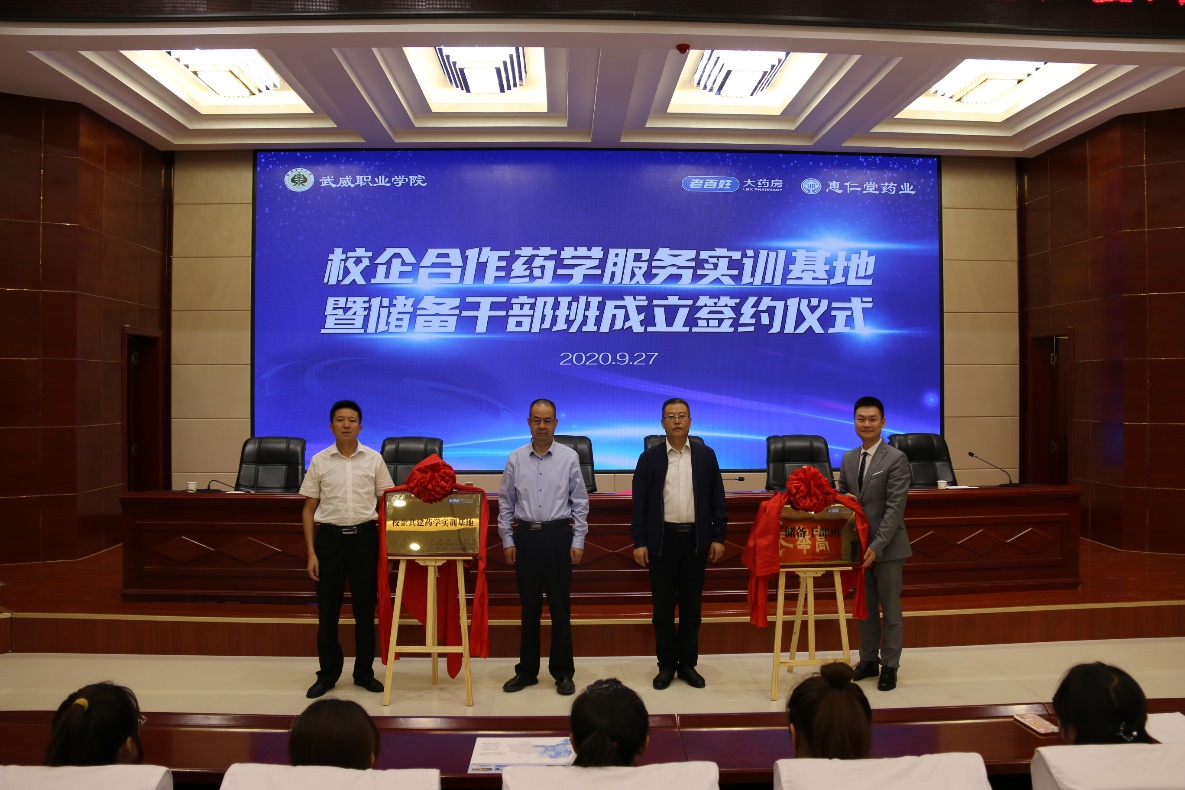 2020年9月27日上午,學(xué)院與老百姓集團(tuán)﹒蘭州惠仁堂藥業(yè)連鎖有限責(zé)任公司“校企共建藥學(xué)實(shí)訓(xùn)基地”暨“老百姓儲備干部班”成立簽約儀式在大學(xué)生活動中心菁英廳舉行。儀式由藥學(xué)系主任魏潤明主持,學(xué)院黨委副書記翟存祥、老百姓集團(tuán)總部和蘭州惠仁堂藥業(yè)公司相關(guān)領(lǐng)導(dǎo)出席,藥學(xué)系教師代表和2019級藥學(xué)、中藥學(xué)專業(yè)學(xué)生代表共計(jì)220人參加了簽約儀式。