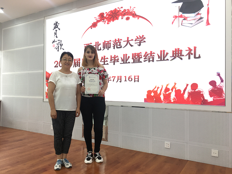 畢業(yè)典禮在留學(xué)生視頻播放中開始,視頻內(nèi)容真實,情真意切,如實記錄了留學(xué)生在華學(xué)習(xí)、生活的點(diǎn)點(diǎn)滴滴,展示了“一帶一路”合作倡議下教育對外開放的成果。西北師范大學(xué)國際文化交流學(xué)院書記李東海宣讀結(jié)業(yè)生名單,我院19級5名留學(xué)生赫然在列。西北師范大學(xué)國際合作與交流處處長王君朝向留學(xué)生祝詞,對留學(xué)生經(jīng)過努力學(xué)習(xí)、順利畢業(yè)表示衷心祝賀。留學(xué)生代表用流利漢語發(fā)言,既反映了漢語學(xué)習(xí)的效果,也表達(dá)了對漢語學(xué)習(xí)生活的留戀,對學(xué)校培育的感激,對中國政府和中國人民對外友好的真心感謝。留學(xué)生在激動喜悅的心情中領(lǐng)取了結(jié)業(yè)證書及紀(jì)念品。