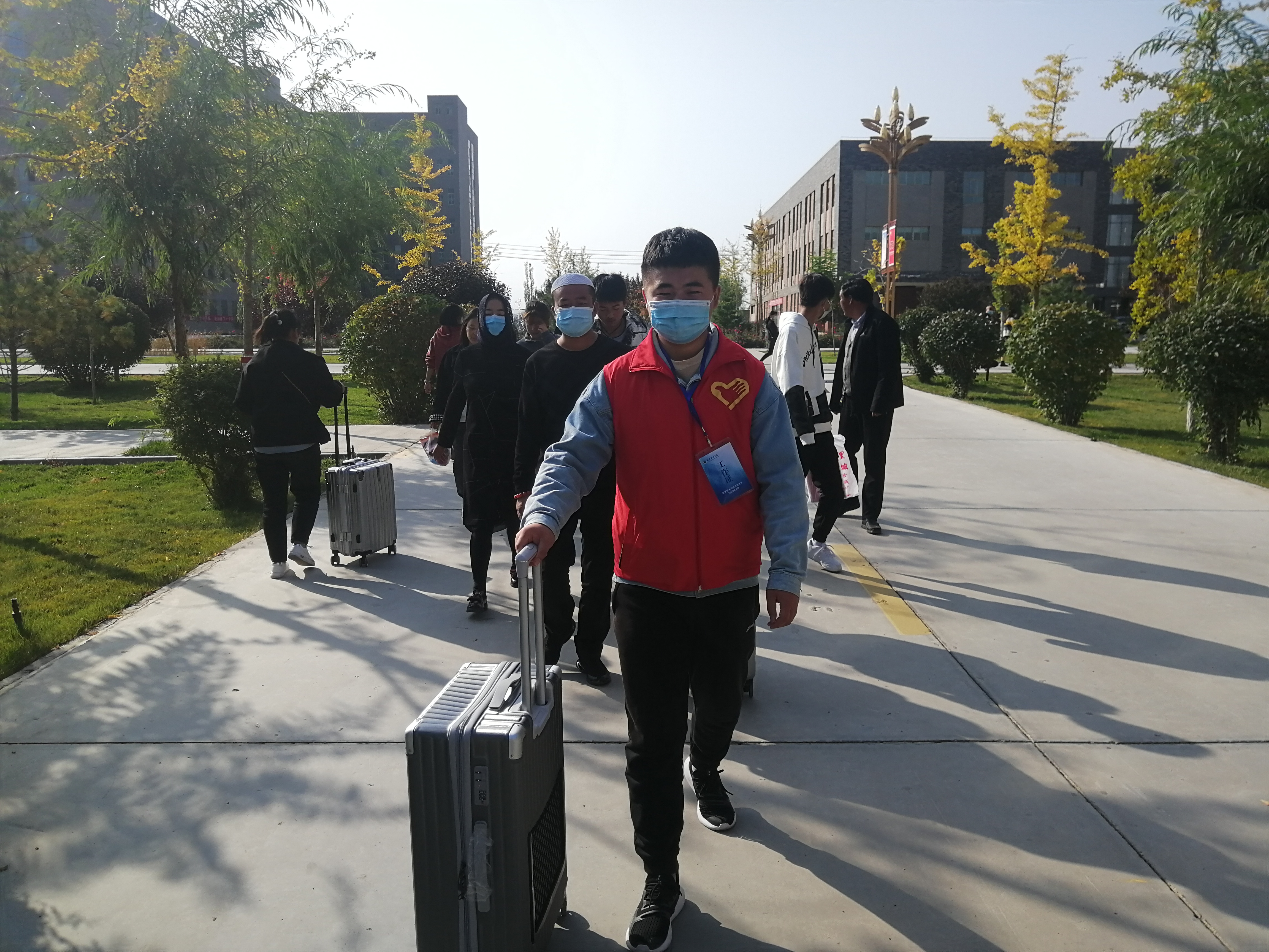 此次迎新活動由我系黨委書記黃文源老師和團委書記石瑞山老師親自指導(dǎo),學(xué)生會成員與分團委成員的配合,我系于2020年10月9日至11日展開了迎接新生活動,提著行李,推著箱子,那一張張青春的面容,充滿了對大學(xué)的好奇和向往。寢室樓里來回穿梭的身影是早在樓下等待幫新生搬動行李的志愿者,揮灑的汗水在幫助新生的喜悅下顯得無比閃耀。
