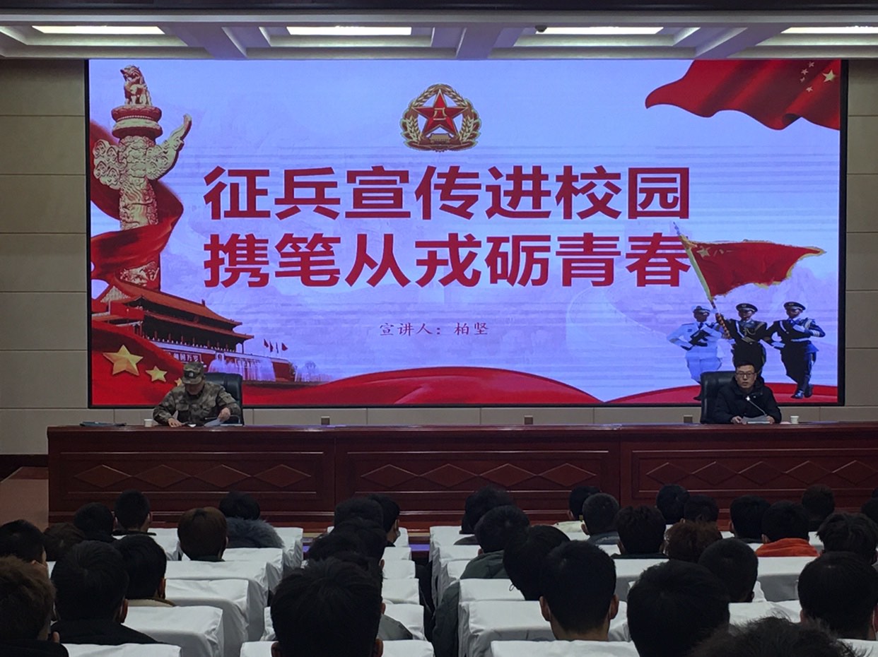 柏堅就征兵工作中的征兵對象、征集辦法、體檢標準、優(yōu)惠政策等做了詳細介紹,并結合自身經(jīng)歷講述了真實的軍旅生活和當兵帶來的變化,引導大學生從增強體魄、鍛煉意志、加強組織紀律性和提高執(zhí)行力等方面全面認識應征入伍的重大意義,教育大家把個人理想抱負融入強軍夢、中國夢,投身祖國建設國防建設事業(yè),號召廣大青年學生積極響應國家政策,勵志參軍,報國建功。