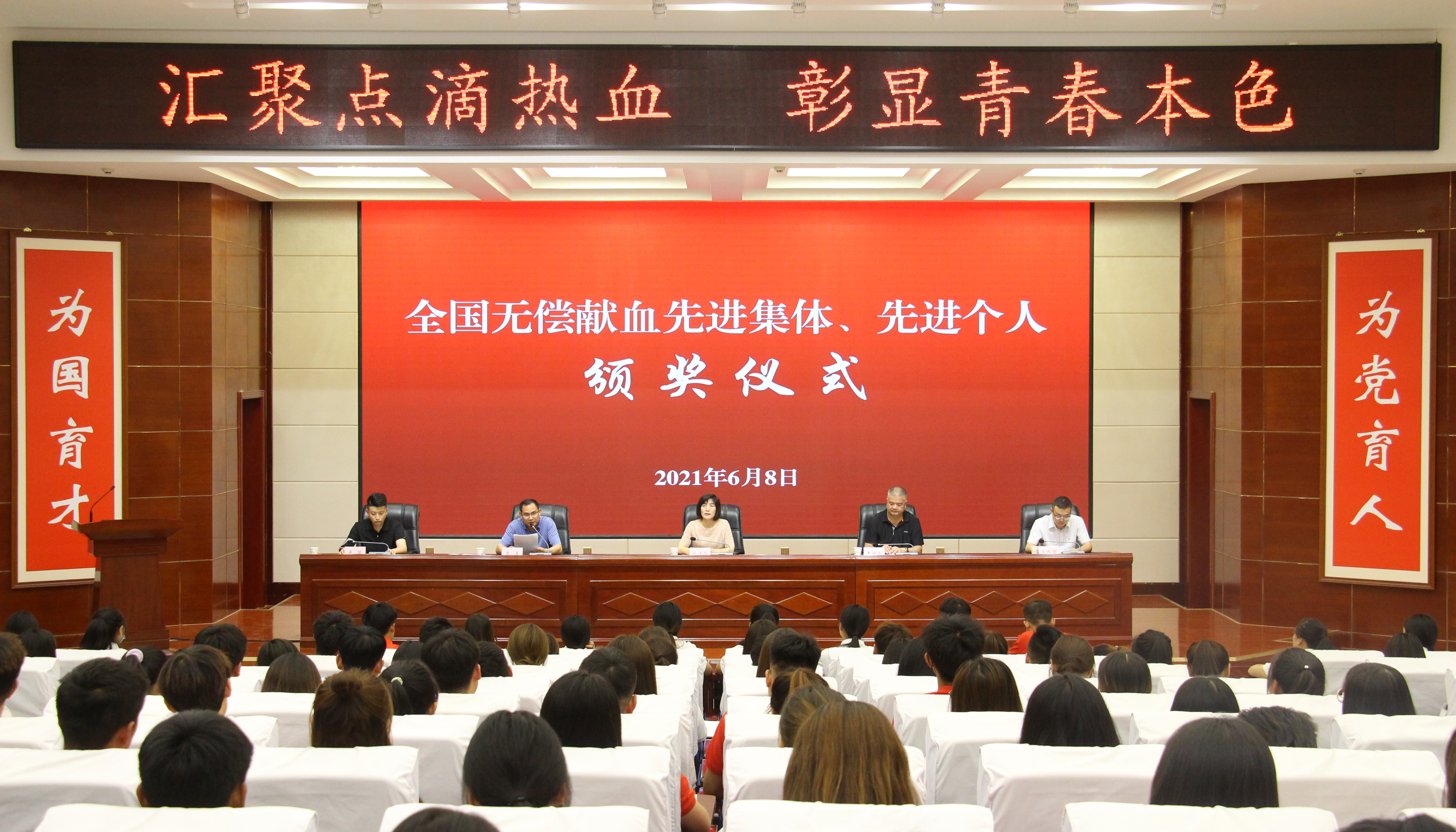 6月8日下午,武威市中心血站、武威市紅十字會(huì)在學(xué)院菁英廳召開全國(guó)無(wú)償獻(xiàn)血先進(jìn)集體、先進(jìn)個(gè)人頒獎(jiǎng)儀式。武威市中心血站站長(zhǎng)蔡清華,武威市紅十字會(huì)專職副會(huì)長(zhǎng)張勇,學(xué)院黨委委員、副院長(zhǎng)王守云出席頒獎(jiǎng)儀式,學(xué)院獻(xiàn)血志愿者代表220人參加活動(dòng)。儀式由學(xué)生工作處、院團(tuán)委負(fù)責(zé)人高鵬堂主持。