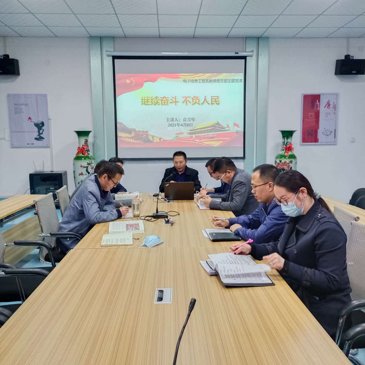 4月8日,電子信息工程系黨總支開展黨總支書記講黨課活動,全體教師黨員參加了學習。電子信息工程系黨總支書記袁青年同志以“繼續(xù)奮斗、不負人民”主題講了黨課。