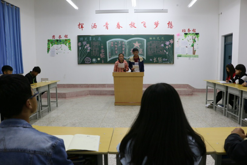 在這次主題活動中,能源系各班積極參加,展示了別具一格的班級風(fēng)采,在本班團(tuán)支部書記的組織下,開展了豐富多彩的活動。特別是16級光伏班,團(tuán)支部書記朱奇前致開幕詞: 80周年的今天,長征途中那驚天動地傳神的英雄壯舉,仿佛就在眼前那隆隆的炮聲。震天的吶喊,仿佛就在耳邊,成為我們成長進(jìn)步的無窮動力。接下來,各班召開了主題班會。以紀(jì)念紅軍長征勝利80 周年,緬懷紅軍創(chuàng)建的豐功偉績,追思和弘揚(yáng)長征精神,爭做文明誠信小公民。在這濃厚的氛圍中,我們被深深感動著,他雖然離我們漸漸遙遠(yuǎn),但我們不能忘卻這段歷史。我們紀(jì)念紅軍長征勝利,就是要重溫長征精神,牢記長征精神,弘揚(yáng)長征精神。把長征精神一代一代傳下去,讓長征精神永放光芒。