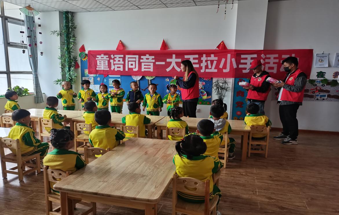 為認真貫徹落實《教育部等九部門關(guān)于開展第24屆全國推廣普通話宣傳周活動的通知》(教語用函〔2021〕1號)、《甘肅省語言文字工作委員會等九部門關(guān)于開展第24屆全國推廣普通話宣傳周活動的通知》要求,進一步加大國家通用語言文字推廣力度,9月14日,學(xué)院推普志愿隊師生在古浪綠洲小鎮(zhèn)第一幼兒園開展童語同音-大手拉小手推普活動,推普志愿隊詳細了解小鎮(zhèn)幼兒教師及兒童的普通話普及情況,并與大、中班幼兒進行了有趣的互動活動。