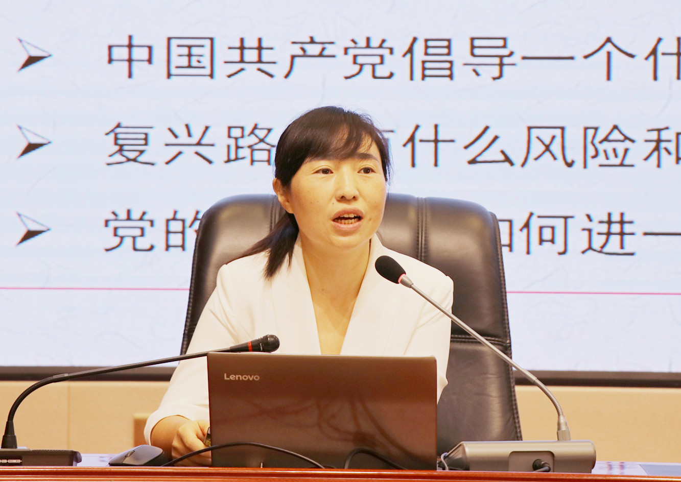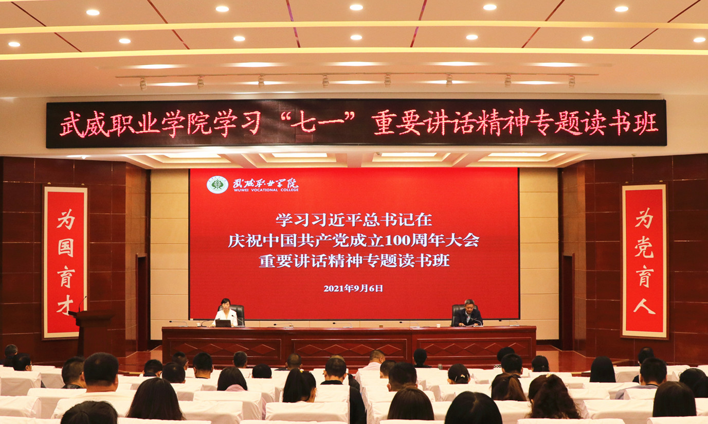 讀書班邀請市委黨史宣傳團成員、甘肅畜牧工程職業(yè)技術(shù)學(xué)院副教授羅海燕同志作專題輔導(dǎo)報告。羅海燕同志從深刻把握習(xí)近平總書記“七一”重要講話的重大意義、深刻把握習(xí)近平總書記“七一”重要講話的豐富內(nèi)涵、學(xué)習(xí)貫徹落實“七一”講話精神三個方面,對習(xí)近平總書記在慶祝中國共產(chǎn)黨成立100周年大會上的重要講話進行了解讀,報告主題鮮明、內(nèi)涵豐富,給參加讀書班的黨員干部和師生作了一場精彩的專題輔導(dǎo)。