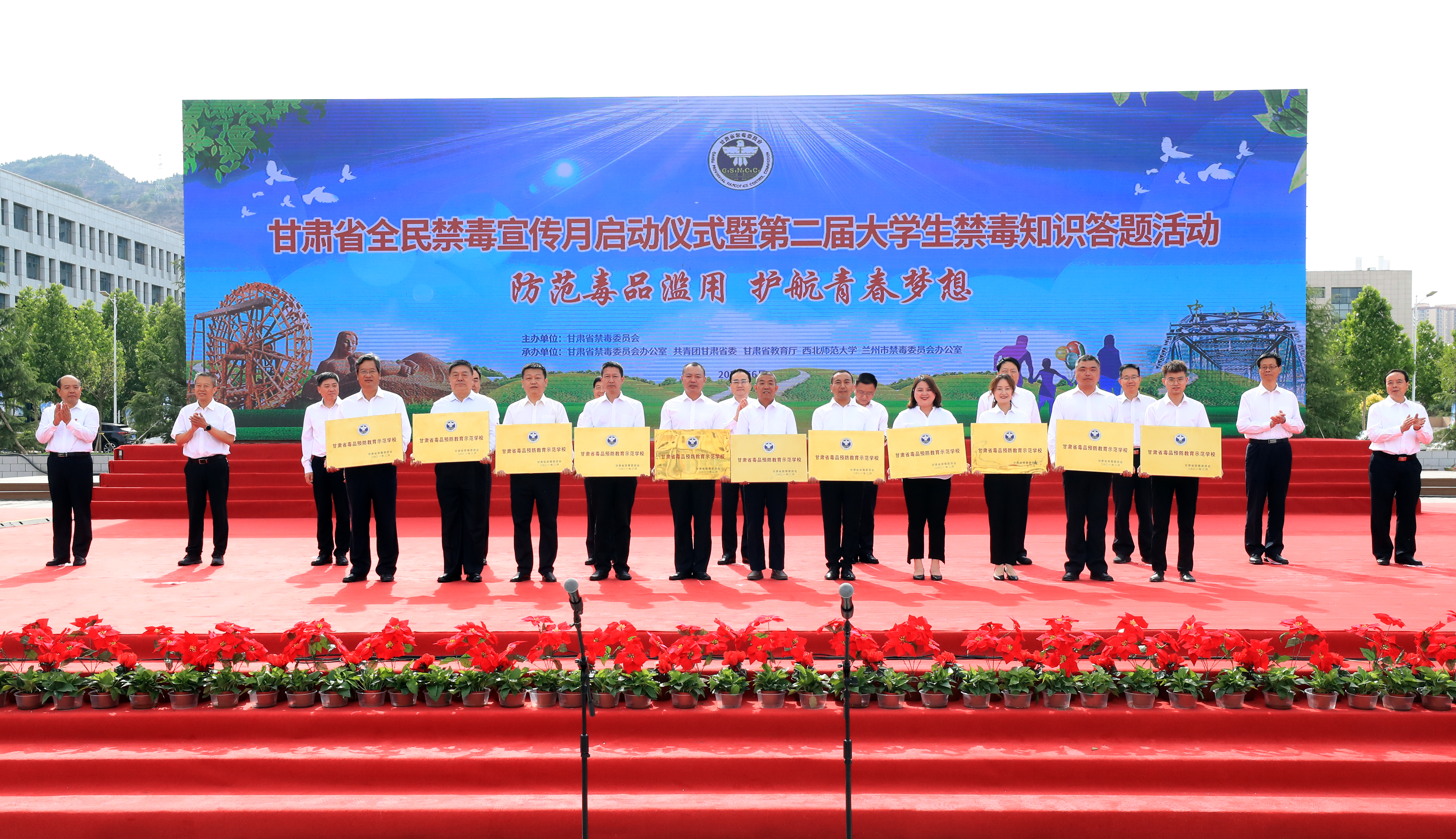 正值全院上下深入推進(jìn)黨史學(xué)習(xí)教育之時,在6月8日上午舉辦的全省“防范毒品濫用·護(hù)航青春夢想”為主題的甘肅省全民禁毒宣傳月啟動儀式暨第二屆大學(xué)生禁毒知識答題活動啟動儀式上,學(xué)院被命名表彰為“甘肅省毒品預(yù)防教育示范學(xué)校”。