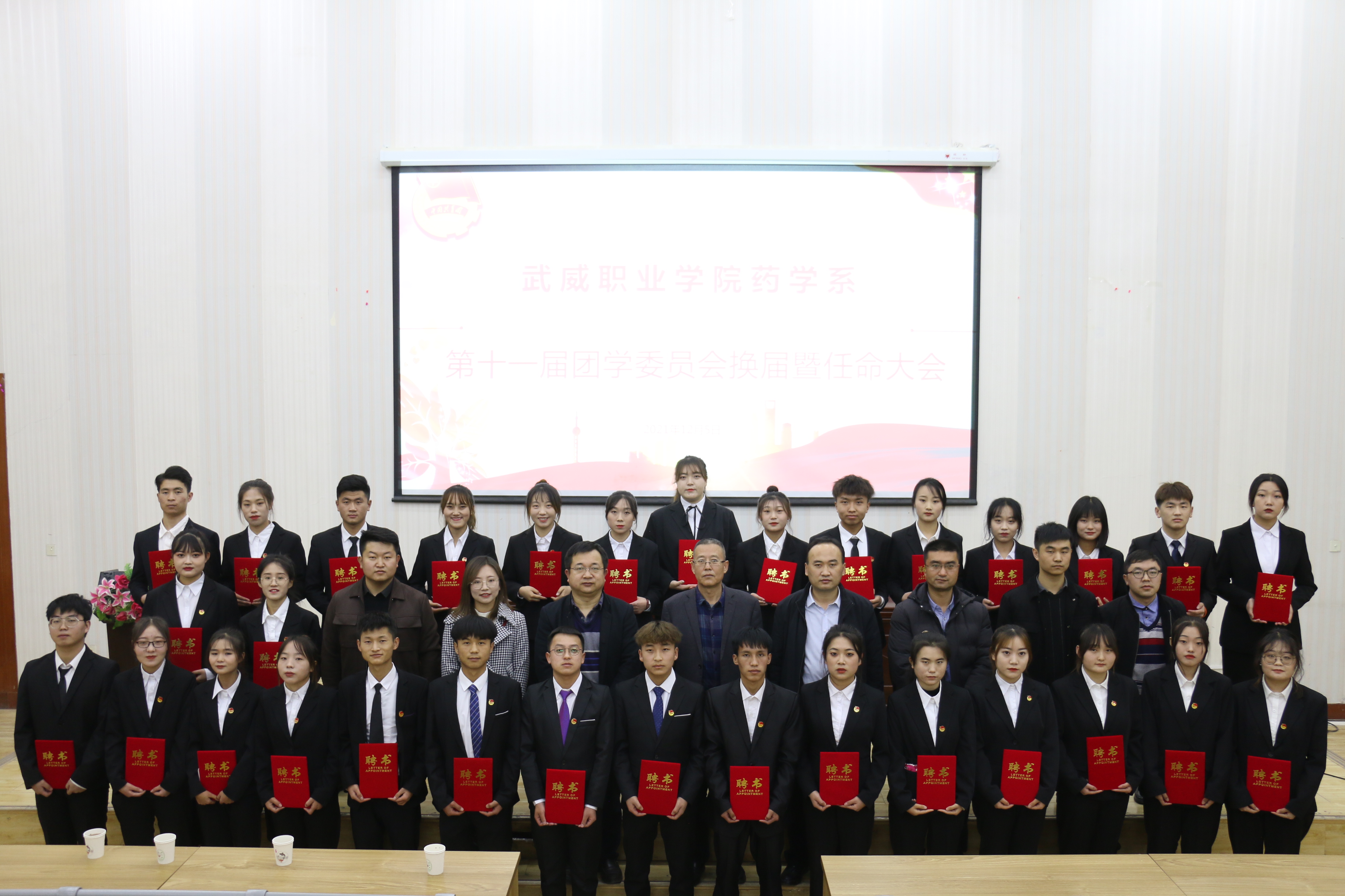 2021年12月5日下午,藥學系第十一屆分團委、學生會換屆大會在正德廳隆重召開。藥學系黨總書記、主任魏潤明、副主任楊建美、黨建專職組織員陳輝生、教學秘書王建強、學籍管理員徐錦鳳、就業(yè)輔導員魯倩林及各班主任、學生會干部代表及各班級代表共計260人出席大會。
