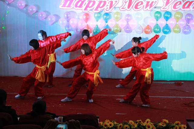 我系趙磊老師的薩克斯獨(dú)奏節(jié)奏明朗,富有磁力,優(yōu)美的旋律深深地吸引了全體觀眾。12級(jí)光熱班的張新輝,張一凡等同學(xué)反串《甄嬛傳》令現(xiàn)場的觀眾捧腹大笑。一首《祝?!返睦收b牽掛了所有觀眾,武術(shù)《中國功夫》令得全場驚呼,舞蹈《江南style》的精彩演出吸引了所有人的眼球。最后晚會(huì)在《同一首歌》的大合唱中緩緩落幕。