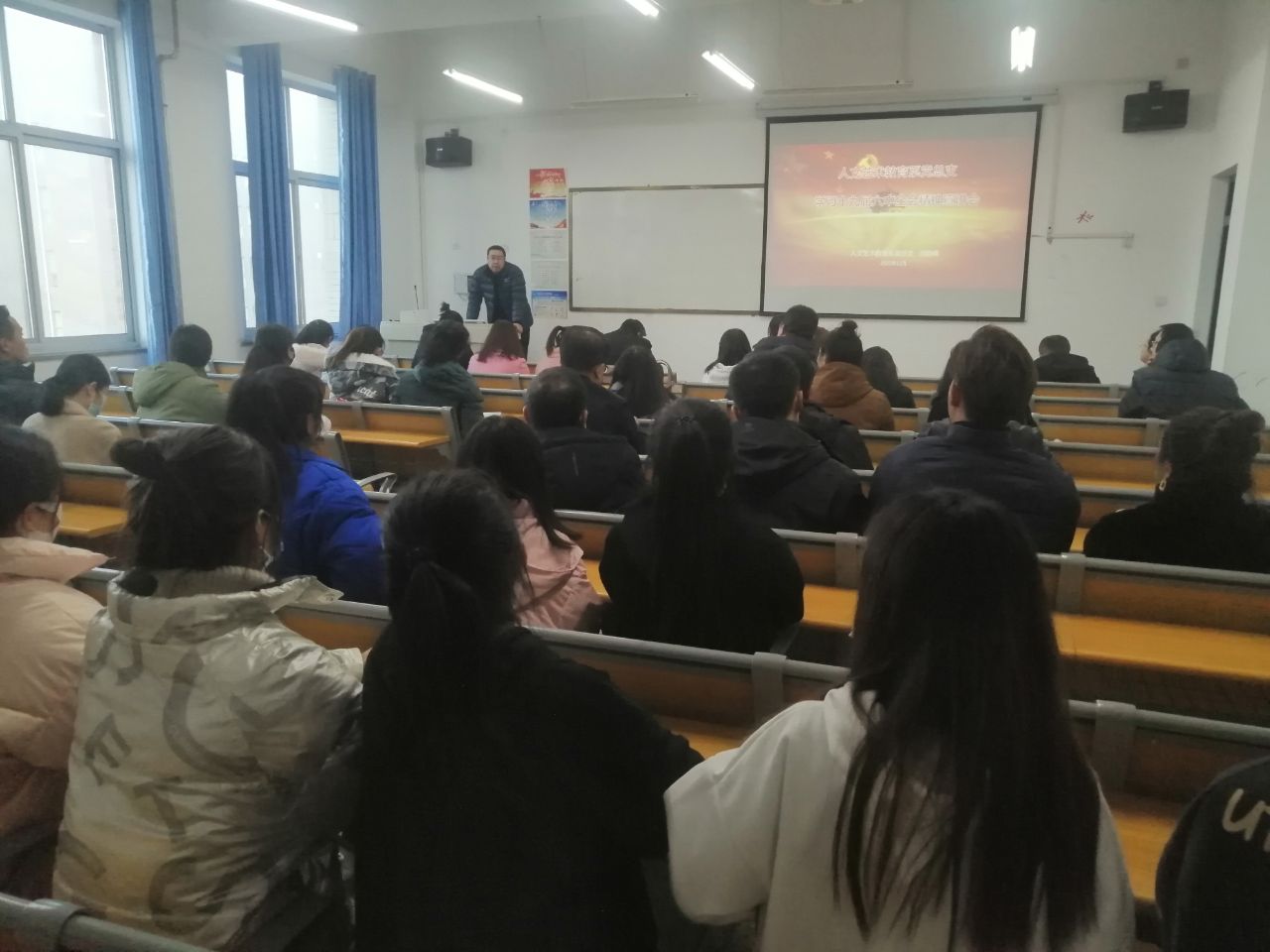 為深入學習宣傳貫徹中國共產(chǎn)黨十九屆六中全會精神,把全系師生的思想統(tǒng)一到全會精神上來,把智慧和力量凝聚到實現(xiàn)全會確定的各項目標任務上來。2021年12月9日人文藝術(shù)教育系舉辦十九屆六中全會精神宣講報告會,由人文藝術(shù)教育系黨總支書記胡靜峰同志在勵勤樓309多媒體教室為全體黨員作了一場有思想、有溫度、有筋骨、接地氣的理論宣講報告,人文藝術(shù)教育系全體教師、輔導員、學生代表和外聘教師近百人參加了報告會。