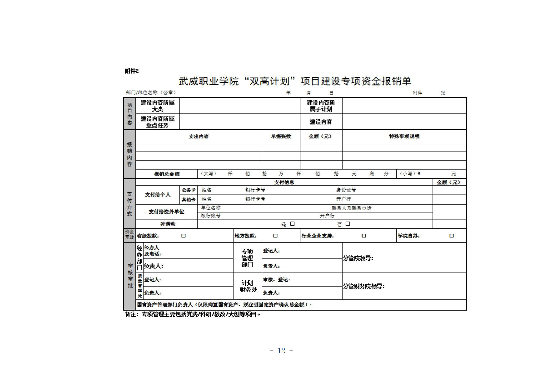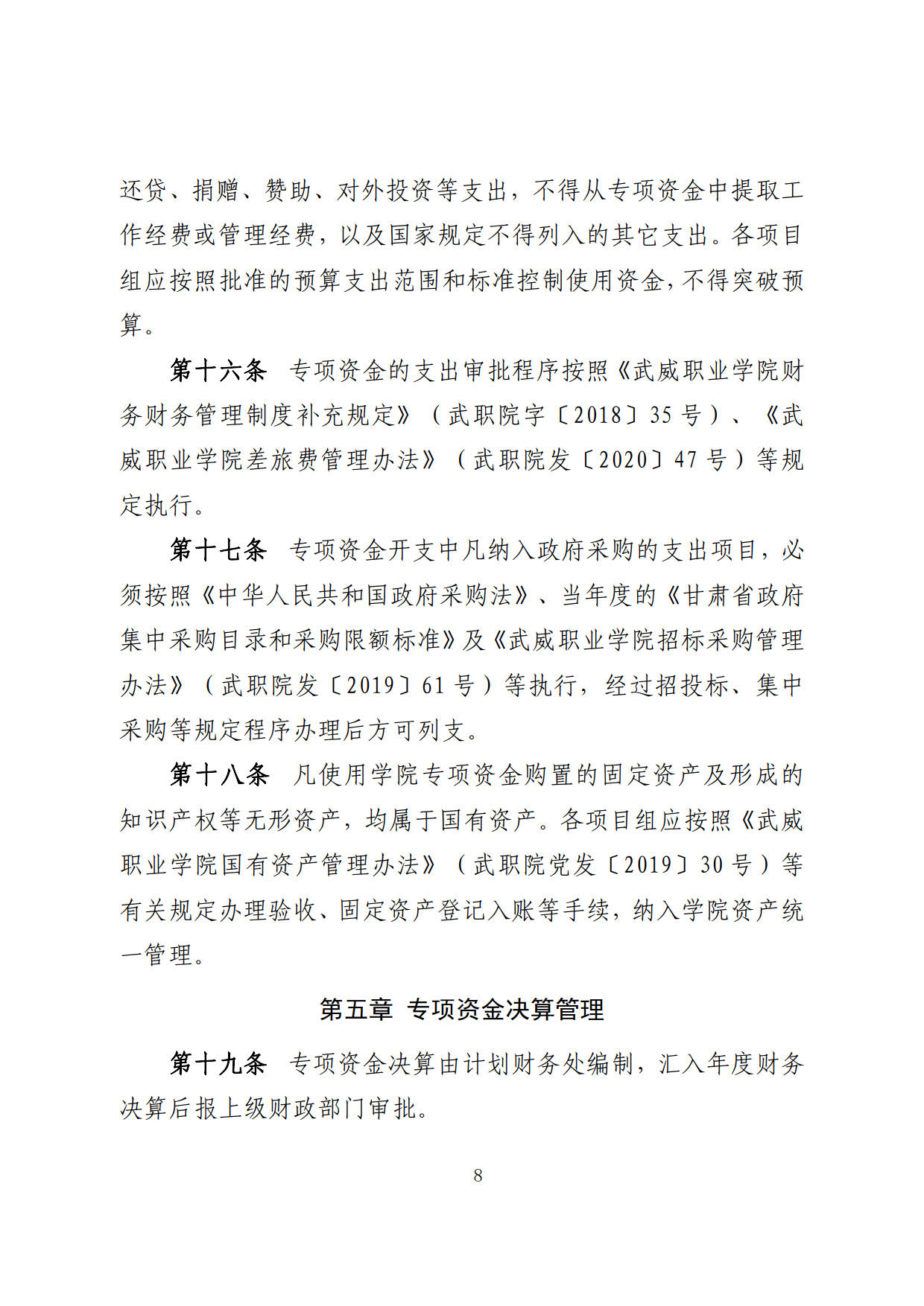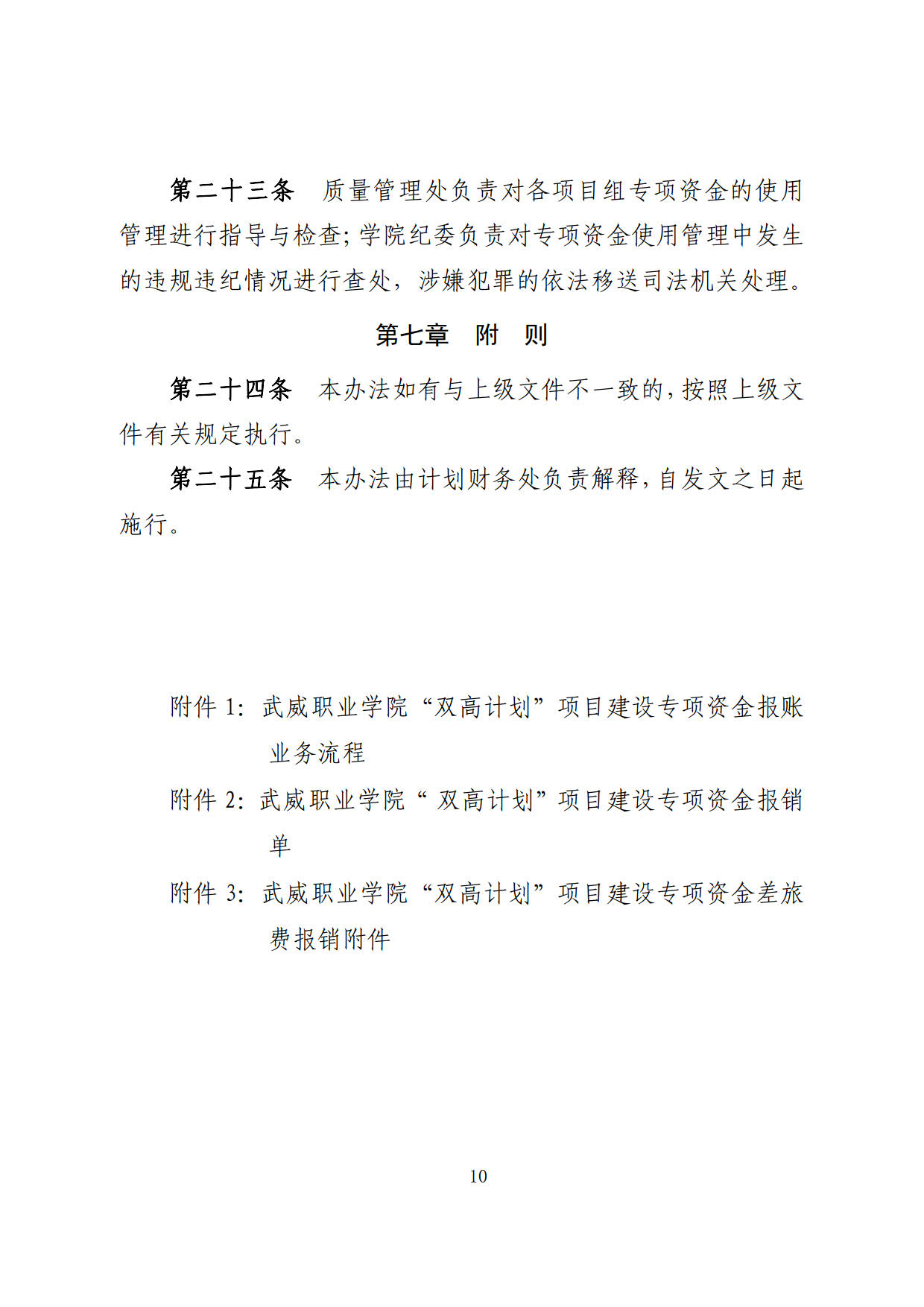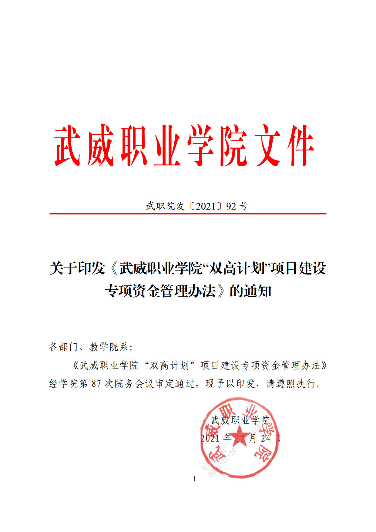 關于印發(fā)《武威職業(yè)學院“雙高計劃”項目建設專項資金管理辦法》的通知
