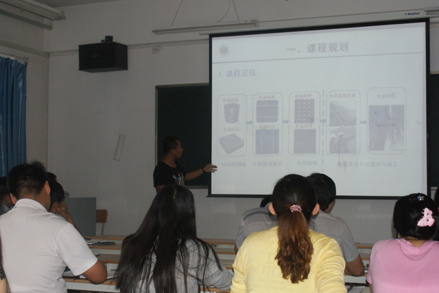 其次,暑期外出參加培訓(xùn)的五位教師對培訓(xùn)情況做了心得匯報。顏魯薪、戚環(huán)宇兩位老師對暑期前往四川樂山參加的光伏材料的生產(chǎn)與加工技術(shù)的培訓(xùn)情況與大家做了分享與交流;張國祥老師對暑期前往江蘇無錫參加電氣化技術(shù)培訓(xùn)做了分享與交流;黃述杰、侯鐸老師對暑期前往江蘇南通參加全國新能源應(yīng)用技術(shù)的培訓(xùn)情況做了分享與交流。